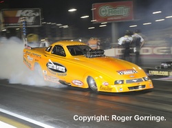 saw his day end when the Motorcraft/Quick Lane Mustang went up in smoke just off the start line allowing Johnny Gray to take the win with a 4.123/311.