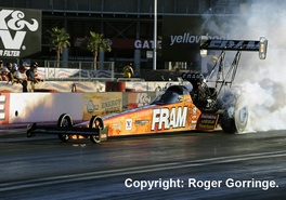 to Matt Hagan. The quarter finals started with Johnny Gray catching and passing Paul Lee and taking the win on a 4.147/312 as Lee hit tyre smoke around half track. A close race ensued with