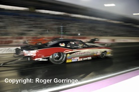 The race suffered a few kabooms, fireballs and oil-downs and two accidents as firstly Pro Mod driver Scott Ray got crossed up and hit the wall and Pro Stock Motorcycle rider