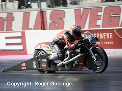 Andrew Hines opened up the semi finals with a 6.977/192 win staying ahead of Angie Smith on her Coffman Tank Trucks '10 Buell whose 7.053/189 did not make the grade. Eddie Krawiec led the