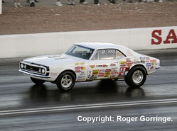 The win in Stock Eliminator went to Jim Meador in his '67 Camaro, an 11.047 beat the breakout 9.693/139 from Andrew Durham's '11 Challenger. Finland's Markko Jarmanen, in