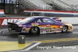 Winners in round one included Shane Gray over Ron Krisher, Rodger Brogdon beating Kurt Johnson in a close race, Vincent Nobile over Greg Stanfield, Jeg Coughlin Jr winning against Ronnie Humphrey. Greg Anderson put Larry Morgan in the trailer as Mike Edwards beat V Gaines. Jason Line beat an improving Grace Howell and Allen Johnson took out the other lady Erica Enders who red lit. Mike Edwards opened round two with a defeat of Roger Brogdon, a superb holeshot 6.575/210 beating the 6.658/189. Vince Nobile left first but was run down and beaten by Jeg Coughlin Jr who took it by a nose, 6.590/209 to a losing 6.609/209. A red light ended Shane Gray's weekend as his 6.594/209 was of no use as Jason Line got the nod with a winning 6.534/212. Greg Anderson finally beat Allen Johnson in a close race that had the 6.550/210 from Anderson take the light as the 6.570/210 lost. In the semis it was Mike Edwards turn to beat the tree, a red light 6.590/209 was all to no avail as Jeg Coughlin Jr's 6.615/209 took the win. An all team race pitted Greg Anderson against Jason Line and it was Anderson's holeshot that got the win coupled with a 6.545/211 as Line chased in vain losing with a 6.547/211. The final was a race of the speedshop cars, Greg Anderson in the Summit Racing Equipment '10 GXP against the Jegs.com/Mopar '12 Avenger driven by Jeg Coughlin Jr. Coughlin left first but was reeled in by Anderson who took the win with a 6.549/210 to the losing 6.586/209.