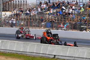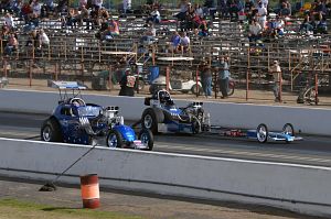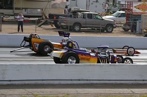 In NEI there was another double breakout and Bill Webber's dragster broke out the least in his race against the dragster of Alan Hull.