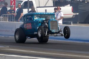 John Hildebrand's three window coupe surprised with this wheelstand which came down fairly hard without major damage.