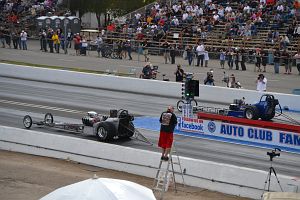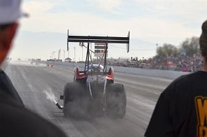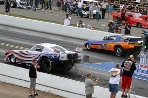 The Top Fuel Dragster final where Tony Bartone defeated the dragster of Rick White with a 5.623 to White's 5.715. Sunday's results can be seen at Competition Plus.