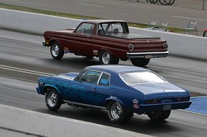 The remaining pictures are of final rounds. In Hot Rod, James Kirkman's '73 Nova overcame the handicap advantage of Eric Christianson in his Falcon pickup.