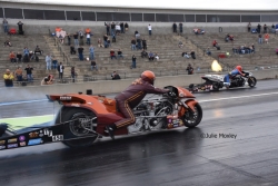 2016 Man Cup World Finals, Valdosta Report and pictures by Steve and Julie Moxley The 40th Man Cup World Finals sponsored by Mann Hill Garage took place at South Georgia Motorsports Park, Valdosta on 9th-16th November 2016. The final round of the 2016 Man Cup Series turned into a unique event, with the wedding of former ACU Champions Kevin Charman (Top Fuel Bike, Funny Bike and Comp Bike) and Lizz McCarthy (Comp Bike) taking place on the start line of the track. It took place just before the start of the opening qualifying session of Top Fuel Bike. Jay Regan from MRE gave Lizz away. This was the first wedding to have taken place during a Man Cup event. The other news was that parts suppliers DME signed up to sponsor an All Star Shootout in Pro Street, with the eliminator starting on Thursday. Top Fuel Bike Sam Wills had a slender lead of nineteen points coming into this event ahead of Larry McBride. McBride ran 5.838/247.29 (number one qualifier)