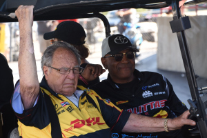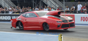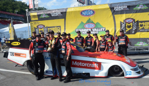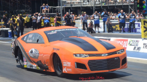 Jack Beckman reached the semi-finals after beating Tim Wilkerson and J.R. Todd. But went up in smoke against Force. The other side of the ladder saw Bob Tasca beat Jim Campbell and Robert Hight to face Ron Capps in the other semi-final. Capps trailered Alexander and Shaun Langdon. In the semi-final Capps drifted to the wall at the 800ft mark and Tasca took the win light. So the big questions were: could John Force finally get his 150th win - or could Tasca win (his last win was in 2012)? Tasca got out the gate first and turned the win light on to finally break that seven-year drought. Pro Modified. This was round seven of the E3 Spark Plugs NHRA Pro Mod Racing Series. Series points leader Steve Jackson had handling issues during qualifying and qualified in seventh spot. Todd Tutterow was the number one qualifier at 5.774 (also low et of the meet). In the final qualifying session, Marc Caruso's parachute failed and he ended up going through the safety net in the shutdown area and into the barrels. The fuel tank broke off and landed on a rock; Caruso got out of the car unhurt. Two former NHRA champions Erica Enders and Rickie Smith didnt qualify for the event. But with Caruso out of the show Enders came in as first alternate.