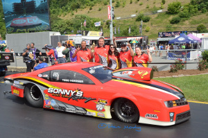 Funny Car. John Force was hoping to win his 150th NHRA National event and was the number one qualifier 3.911at 326.95mph (low et and top speed of the meet). Blake Alexander was driving Jim Heads Funny Car (Jonnie Lindberg still sorting out paperwork), qualifying in tenth spot.