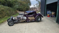 The Gleadow family have been involved in British drag racing since Adam’s grandfather Charles ran a catering van at a Debden sprint meeting and the first Dragfest. Charles’s sons Bob, Mick and Brian then ran a Ford Pop called Motor Psycho, and over the next 30 years they fielded a series of cars including a slingshot, T-bucket/Rover V8 altered, Mustang funny car and Top Methanol dragsters driven by Eurodragster.com sponsor Fay Fischer and Dave Wilson. The next generation was involved from 2000 when Adam Gleadow started in Junior Dragster, moving up to an injected methanol big block altered in 2006 and a blown alky NFAA '34 Coupe in 2009 that later gained a new I.C.E. chassis, and T-bucket and Bantam bodies. Come 2016, the team were thinking about a new drivetrain – and nitro. Click on any picture for a large image. Eurodragster.com: What was the source of the drivetrain and what mods had to be done to the existing chassis? Adam: We purchased The Mob complete from Ollie Burn in spring 2016 and set about moving the engine and drivetrain over into our car. The deal had been in the making for a year or so and after selling on our alcohol Rodeck Chevy, clutch, Lenco etc we were in a position to make it happen. Bill at Comanche Race Cars undertook the job of mounting the 417 Donovan Hemi in the chassis and re-locating the rear axle to suit a smaller tyre, with the wheelbase shortened to 120" and a drop tube/torsion bar set up with zero overhang instead of a-arms, a mid '70s fuel altered look was our vision. Eurodragster.com: How did the build progress from there? Adam: We got the rolling car home in December 2016 and set about stripping it to a bare chassis in preparation to completely go over the whole car back to front, a quick engine swap was off the cards at this point! As we went through the build we carried out a lot of upgrades throughout the car, remounted and tinned the body, fitting shorter double wheelie bars. There isn't much that hasn't been re-engineered, making the car much more user friendly for servicing and also more comfortable in the cockpit. We also fitted a Butler lateral head support system and a poured seat insert. Eurodragster.com: What work has been done on the Donovan Hemi? Adam: The engine has been fully freshened with new liners, rods, pistons etc, crankshaft balanced and flywheel/clutch overhauled. Fuel system changed from a bug-catcher to new Hilborn 4 port with the same Dave Benjamin fuel system. One of my absolute favourite parts of the car is the stainless zoomie headers, after a lot of research I showed my cousin Ed what I was after and he absolutely nailed it!! Custom made from 2.5" stainless steel with a long swoopy bend, they finish off the big Hemi perfectly. Eurodragster.com: How did you fit the fuel tank and oil sump? Adam: Space at the front of the car was at a premium so it took a bit of creativity to fit a suitable size fuel and dry sump oil tank in but with help from Gary Sanders at XCS we came up with a very neat and (for the space available) accessible solution. Eurodragster.com: The paint and sign writing looks fabulous! Adam: Martin Maxwell handled the Ford Aubergine paint on the body (to match Brian, Mick and Bob's original Motor Psycho Pop in 1968) Adam Reed painted the bootlid and grille. The graphics were done by PWRD and signwriting by my good friend Joe Curtis at Fresh Reflections. It's been a very long road to get the car completed, but we are very proud of the final result and look of the car and achieving a dream I've had since I was 7 years old watching Clive Mechaell race. Eurodragster.com: What are the team’s plans for 2020? Adam: For 2020 we look forward to making progress with testing - small steps to get a handle on nitro and hopefully we will see a few more cars emerge that are currently in the works and we can make real fuel altereds a more regular sight at the track again. We recently had a family trip to the March Meet at Bakersfield to celebrate Bob's 70th birthday with Brian, Mick, Martin, myself and Stewart. We've come back with a lot of inspiration, help and advice from the American fuel altered guys. Eurodragster.com: So when will we see it on track? Adam: The car is sat complete and ready to make the first test passes as soon as the current Covid-19 situation stabilizes. We're working through some updates and tool trays/racks to make servicing and maintenance more straight forward in the mean time. We have also fabricated under engine belly pans in addition to the diaper, for another layer of safety and to minimise down time in the event of any engine damage. Eurodragster.com: Who’s in the team and who supported you? Adam: As always these things cannot happen without a lot of help and support. Firstly to my partner Vicky and my dad's partner Christine for for putting up with the late nights and weekends at the workshop. To my Dad for supporting my fuel altered dream at all times, our crew, Darren, Martin and Chris, without them none of this would be remotely possible. Then there's the people who have provided help, expertise, time and skills to help us achieve this goal. Fuel Altereds Forever! Thanks go out to to; Lawrie Gatehouse, Nick Davies, Rob Loaring, Ollie Burn, Paul Stubbings, John Wright, Randy Bradford, Dan Pettinato, Bryan Hall, Shawn Van Horn, Gene Amaya, Ed Burkitt, Dave Benjamin, Spud Miller, Mike Chilando, Gary Sanders, Nick Vincent, Martin Maxwell, Adam Reed, Herb Andrews, Andy and Tom Craddock, the Bond Family and Martyn Hannis, Antony Billinton, the Robinson Family, Dom Romney, Joe Curtis, Pete Walters, Jared Vandermeer, Rikki Read and everyone who has followed and supported us on social media, your comments and encouragement really help! Eurodragster.com: Many thanks Adam, we can’t wait to see you on track and good luck to you and all the team!