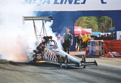Anita Mäkelä: Darren Prentice, the Race Director, has kindly agreed to observe my licence runs. I'll have a word with him about what he needs to see. But first we'll make a hard launch, then a half track run, and after those I should run under 5.4 seconds and over 415 kmh. We have the best possible Crew Chief in Sami Lehtimäki, and I am fully confident that Sami will easily tune our car to run those numbers. Eurodragster.com: Will you be driving the car for the whole FIA season? Anita Mäkelä: I'm fully focused for the return at Easter. I have been following a hard training programme, which includes running between six and twelve kilometres three or four times a week. When I went for my medical I received very high points for my physical condition. I was cycling with heart sensors, and my age and size lady should get 100 points at best. I got 140. The doctor told me that such a result can usually only be expected from a professional athlete! So physically I'm ready to step in, but I don't know whether I will enjoy myself and whether I will feel unbeatable in there. Only Easter will show. So Tommi and I will make the decision after Easter. However, I must appreciate all Tommi's work on this new car, and I must consider that he might want to enjoy himself by driving this nice, new Mats Eriksson Top Fueller of ours. It would solve a few problems if Tommi lost his driving licence driving in traffic daily. So whenever he asks me "What is the speed limit here?", I tell him "120 kmh" even if it is only 60 kmh. And he does the same to me! Eurodragster.com: Your children Hanna and Heikki have watched Tommi race, what do they think about you getting into the car?