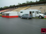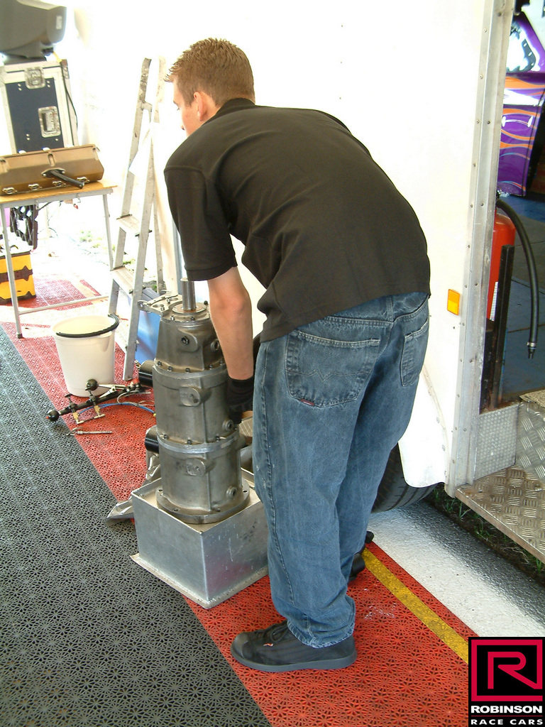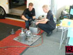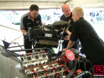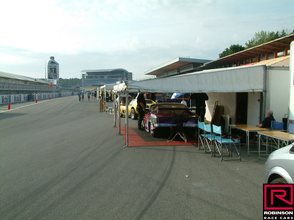 Andy and the crew had been to several earlier events at Hockenheim, so it was no change really to attend the 20th event in 2005. The opportunity to race at such a famous location is almost irresistible, although the track can be tricky since it's only used once a year. This was soon after the change to the blown engine, so we invited the Methanol Meister Dave Wilson to come along and show us how it was done. We arrived pretty early so we were able to see the setup process underway. We were pitted on the edge of the main straight of the circuit with strict instruction not to drop oil on what would be the racing surface in normal circumstances (pic04). Some teams were based in the F1 pits, real luxury accommodations compared with most tracks.