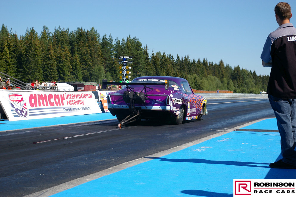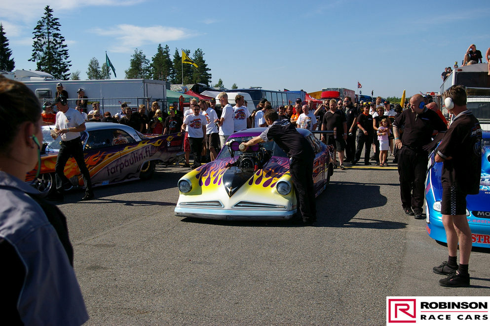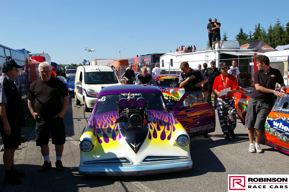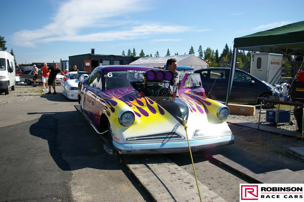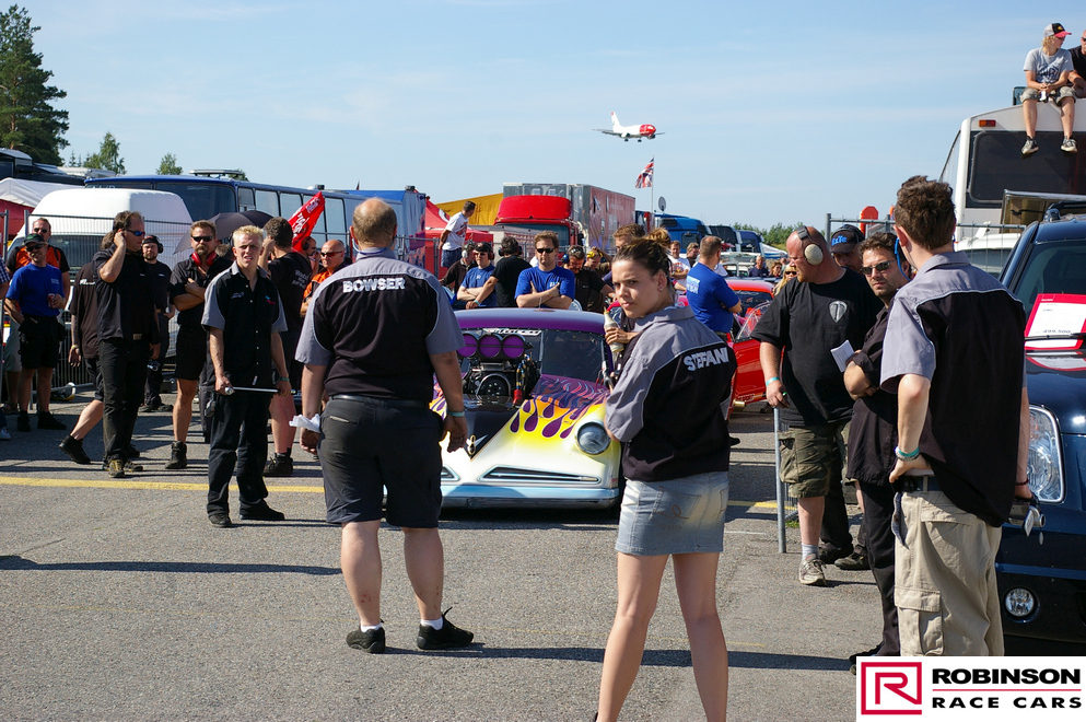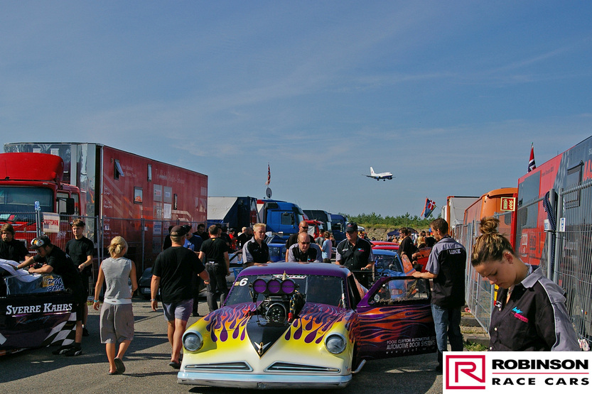 One of the first things we noticed about Gardermoen is that there was not a lot of space. We had to move a funny car body every time we left our pit area (Pic 5). The exceptional number of entries in all the FIA classes packed the space to its limits.