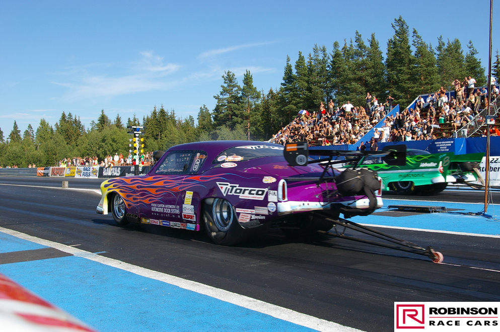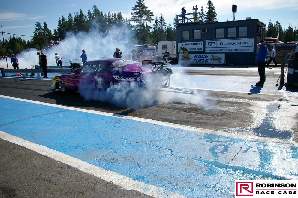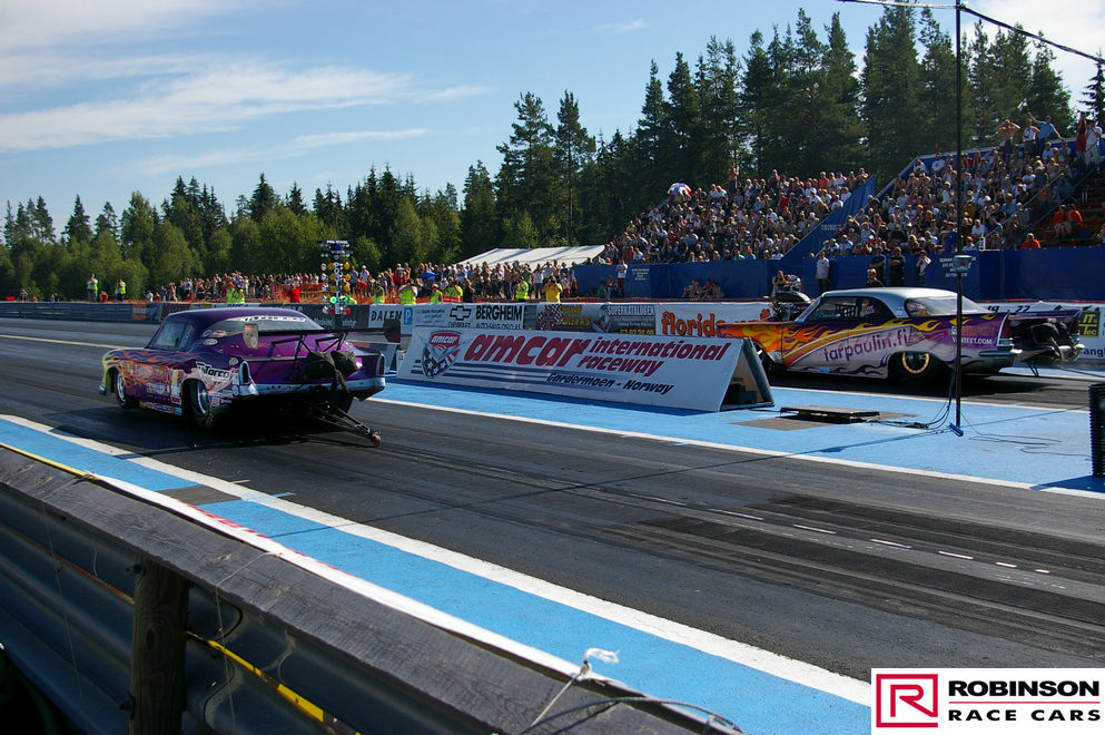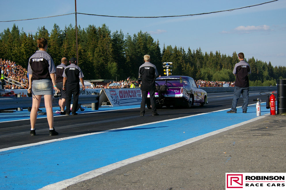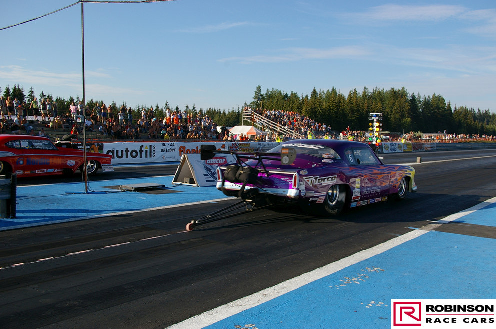 One of the first things we noticed about Gardermoen is that there was not a lot of space. We had to move a funny car body every time we left our pit area (Pic 5). The exceptional number of entries in all the FIA classes packed the space to its limits.