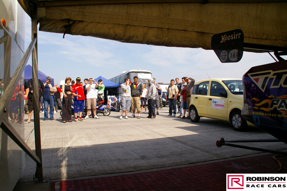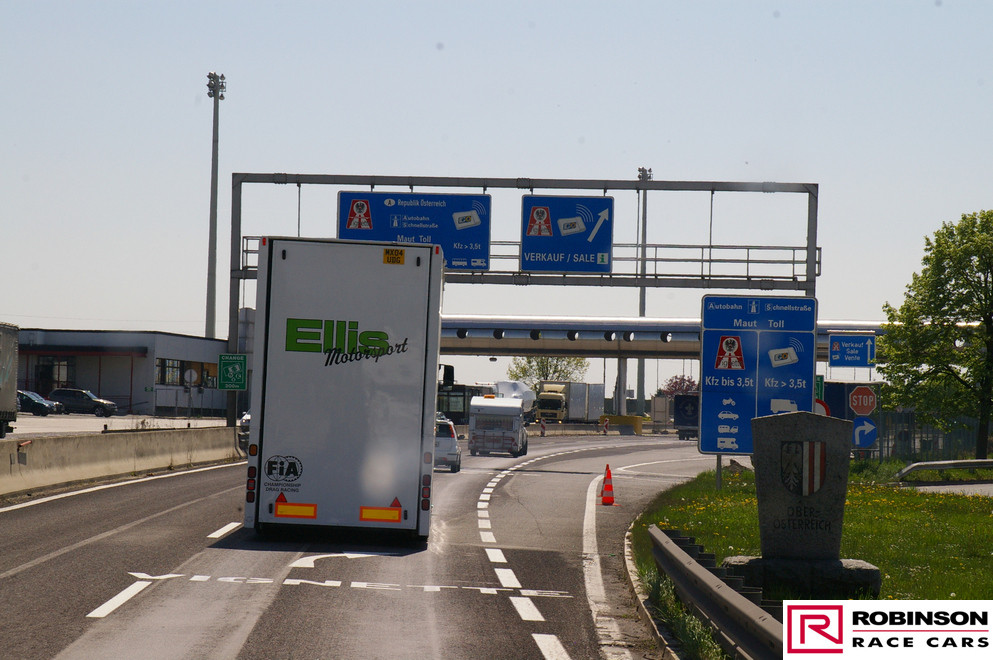 It took two full days to get to the track and because our fellow travellers were on truck driver’s tachos we had to stop regularly and park up for nine hours at night. This proved to be a problem because all the service stations were full of trucks so many in fact that it was sometimes difficult to find a way through. We ended up in a truck stop about 10 km off the autobahn. It was inconvenient but good for breakfast and a shower. Andy’s rig counted as a motor home and trailer so we paid a lot less in tolls than the Ellis truck in spite of having similar total weight. In Austria we had to buy a GO box to cover the tolls (Pic 05), this was preloaded with money and as the vehicle travelled along the autobahn a roadside display would show how much credit there still was. Fortunately my pidgin German was enough to ensure we bought enough credit for both journeys there and back. Our only other problem really was following a car sat nav which took us through the centre of Budapest, in theory not allowed for trucks over 3 tons (Pic 06). We only had to do this because the navigator (me) fell asleep and we missed a crucial turning. We finally arrived at the track in the dead of night and had to try to find the pit area in total darkness. The track itself was the runway of a Cold War bomber station which the Russians had abandoned some years before. Imagine arriving at Gatwick by a side entrance and trying to find a terminal building with no lights to guide you.