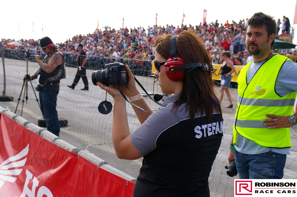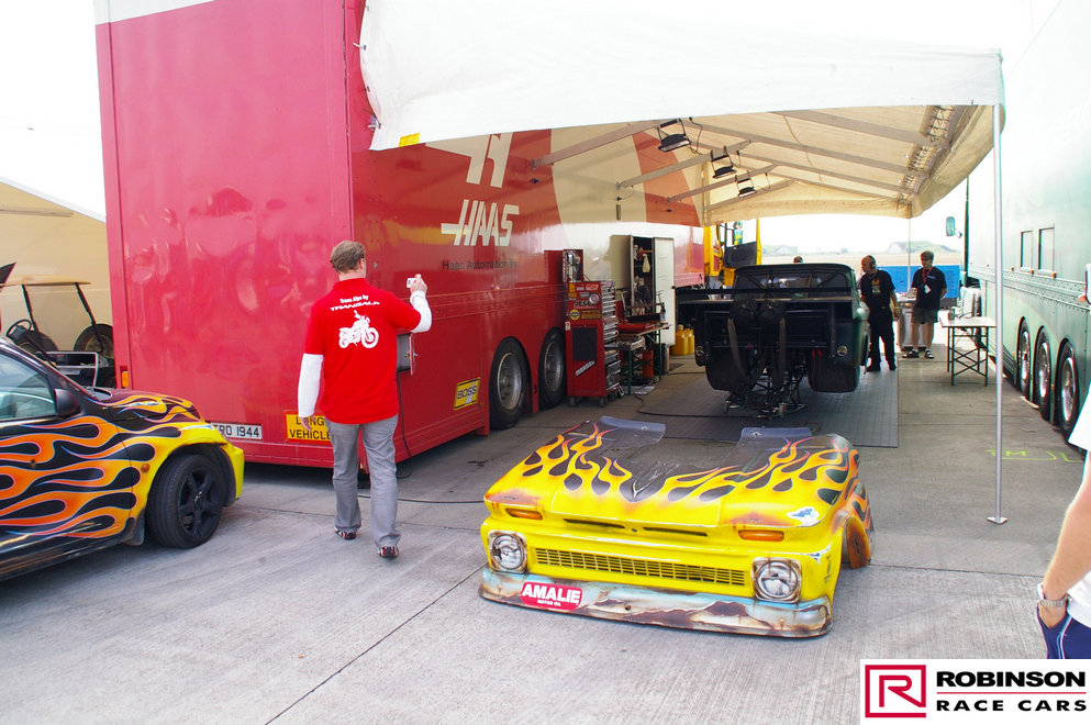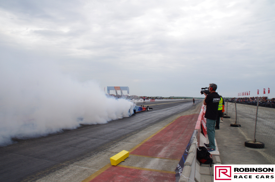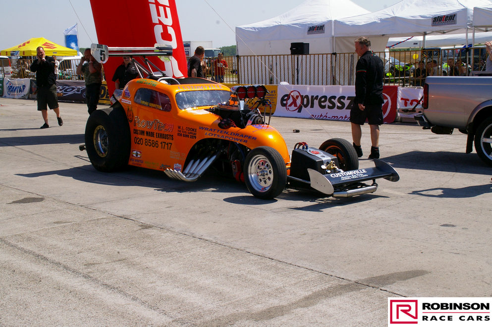 So for us too there was good news and bad. The good was a solid stable concrete track when many considered that to be a perfect surface to race on, the bad was that in spite of the visiting Santa Pod crew’s best efforts the track was green and wouldn’t hold the power of any of the demo cars. So it came down to doing long smoky burnouts – all the drivers could indulge their inner Freddies – and trying to get to the end of the track without kissing both guard rails.