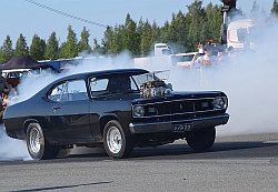 Janne Uskali: This has been the first year of running Blacklist and all Finnish doorslammer racers are crazy about it. Blacklist Street Races have officially registered events. The main sponsor for the series is Bee-One Power Gear who make clothes for gear heads and also compile the Blacklist, a list of some fast Finnish street cars (real cars that can also be driven on the streets). There are ten places on it. Eurodragster.com: How does the series work? Janne Uskali: The idea is to challenge and then defend your place on the top ten Blacklist. There are no restrictions on the cars, but in some races you have to go on the public roads with these cars and drive them through traffic too. So a car owner could have an issue from overheating or a problem with police Otherwise there are no rules, your Blacklist car can be 632cid engine with nitrous or twin turbos, but the best thing is this: 90% of these races are on normal (i.e. slippery) asphalt, with no preparation or extra rubber. So if you have 1500 horsepower or more in your street car, it is really tricky to get it to the tarmac on those kind of strips. That way, we can get close racing, because even if a racer has only a 500 horsepower car, but with good suspension and reaction time, they can still win.