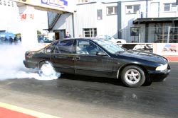 Anders: 10.802 seconds/126 mph. This was at Santa Pod in 2003 and we ran this despite the fact that the blower belt started shredding about a hundred feet off the line. The FAST computer logged 20 psi of boost in the burnout, 17 psi at the start and only 7 psi at the top end! Eurodragster: Who is your current crew? Anders: At the track it's my dear wife Agneta and son Axel. Back home I have a couple of friends who like to be around and dig in when not building on their own cars, like Robert "Syclone" Pothorcki, Tommy "Lincoln 698 ci" Olsson and Anders "Nova" Forsberg. Tommy is also crewmember for Patrick Wikström's Pro Mod team. Eurodragster: What plans do you have for the future? Anders: The natural aim is to top The List - to have the quickest and fastest Impala SS in the world! All my fellow competitors are Impala SS/B-bodies racers in the USA. We have an ET/MPH list with some 250 racers that report their performances to this list. I was No. 3 after 2003 European Finals with the 10.80 but I am falling back as their winter season is rolling on. No. 1 for the moment is Jorge Perez Gurri with a 9.98 on nitrous. It is not street driven.... Eurodragster: What is your favourite story/moment involving the car? Anders: When it was delivered! When I saw it I just got a rush that I'll never forget. Then there are a lot of fun stories which have happened related to weight v performance. Winning my first quarter-mile race after a fifteen-year break was also fun of course. Eurodragster: What is your favourite story from the pits? Anders: Many stories of course! But in my first race with the new blown engine in 2003, at Säve, Gothenburg I was lucky in one of the rounds when the quicker opponent red lit, so I was still in the race. When I got back to the pits my five-year-old son Axel came running as fast as he could, away from his mother, across the big grass lawn from the grandstand and shouting out loud: "DADDY YOU WON! DADDY YOU WON!". Everybody heard him and saw him! I laugh when I think about it. Not that spectacular but I guess every racing daddy and mother can relate to warm memories like that. Eurodragster: What do like most about the sport? Anders: The people of course! And the atmosphere. I'm very romantic about the sport of Drag Racing. I also like the fact that all races are like small vacations, small adventures for the whole family. Eurodragster: If you could award a medal to someone in Drag Racing, who would it be and why? Anders: For Sweden: Stig L Sjöberg, the publisher and CEO of the Swedish publishing house Albinsson and Sjöberg who make the Bilsport Magazine (once my employer). He has always believed in giving back, so I'll guess Bilsport is the biggest sponsor of Swedish Drag Racing ever. Beside all the boosting articles about the art of accelerating that Bilsport delivers every fourteen days! It has been like this since 1975! For Europe: I am absolutely impressed - as everyone else I know - over the fabulous work that you are doing for this sport at Eurodragster! It's not only worth a couple of medals but also a couple of beers! Without you it would be very empty! Keep up the good work of building our European drag racing community! (You are too kind, Anders - Blushing Features Ed) Eurodragster: Any people you would like to thank? Anders: Besides all the people I already mentioned, there are too many more to list. But I guess I can mention my dearest wife Agneta again! She tops my personal list. Also thank you Eurodragster for asking! Feature ©Eurodragster.com Feature index Back to News page Eurodragster.com aims to bring you links to all the best European Drag Racing web sites. To add your site to Eurodragster's listings, simply email links@eurodragster.com with your URL and a little information about your site and we'll do the rest. When you update your site, drop us a line at news@eurodragster.com and we'll feature your site in our "What's New" section. Eurodragster.com is a non-profit-making organisation run by a small group of Drag Racing enthusiasts for the sole purpose of promoting European Drag Racing. If you can help us to meet the modest cost of hosting this web site by advertising here, please email webmaster@eurodragster.com. We're sure you'll find our rates extremely competitive. |