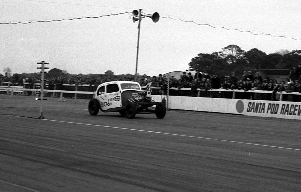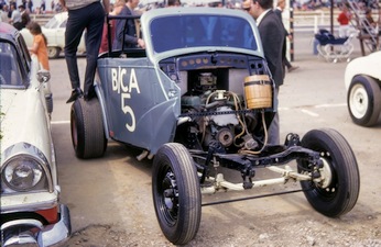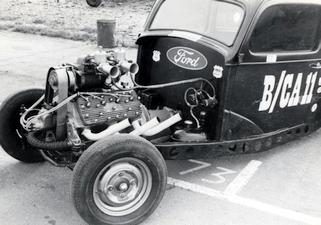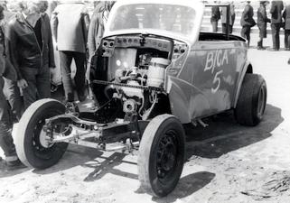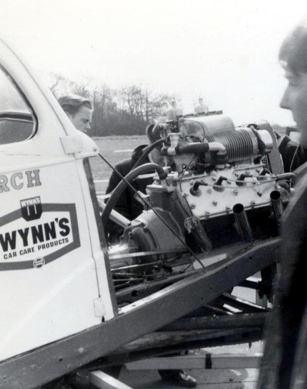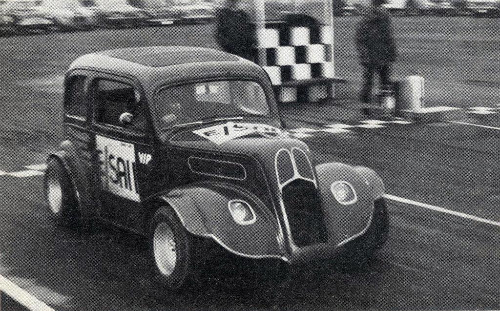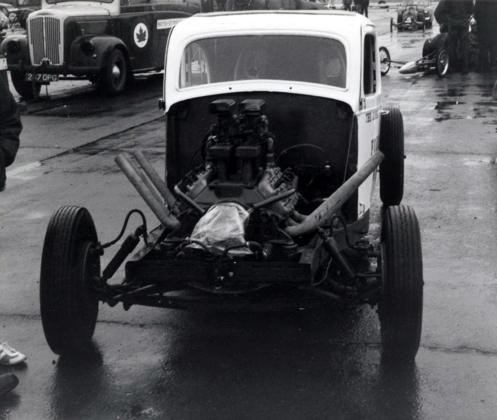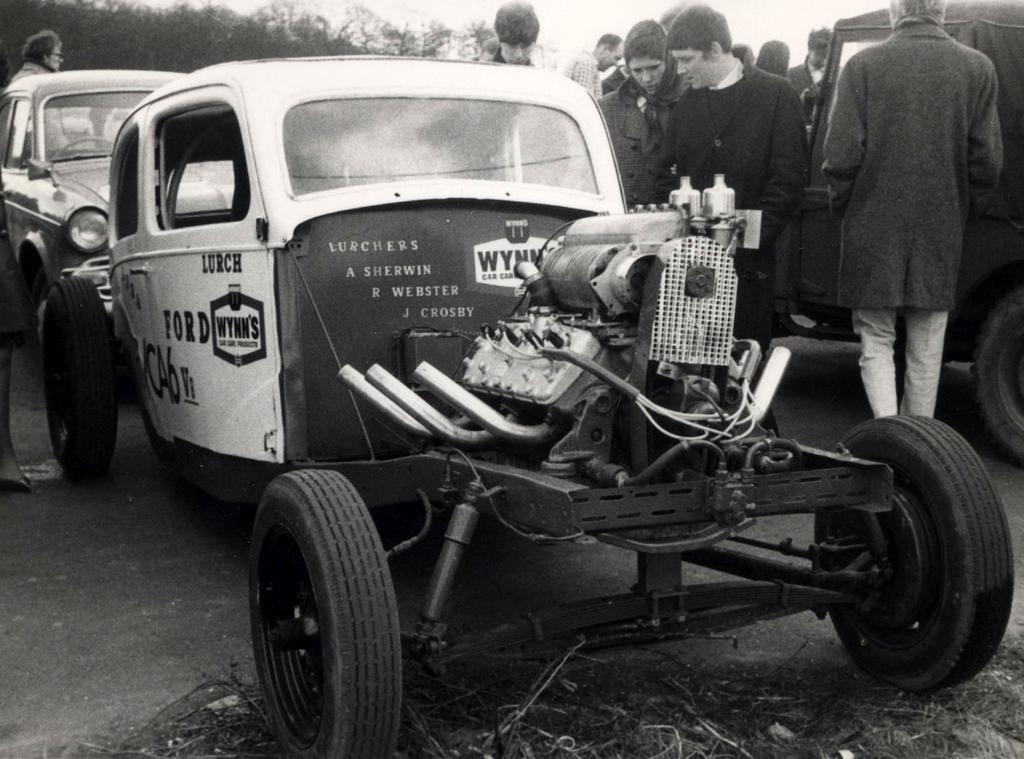 Alan was back out in 1967. The Lurch now sported a large Wade blower atop the flathead fed by two SUs. He’d also given the car a nose bleed rake by fitting a large spacer above the front leaf spring.