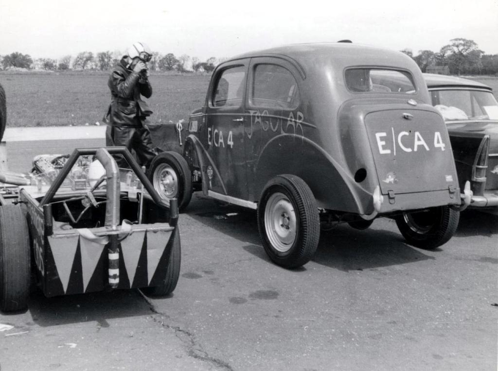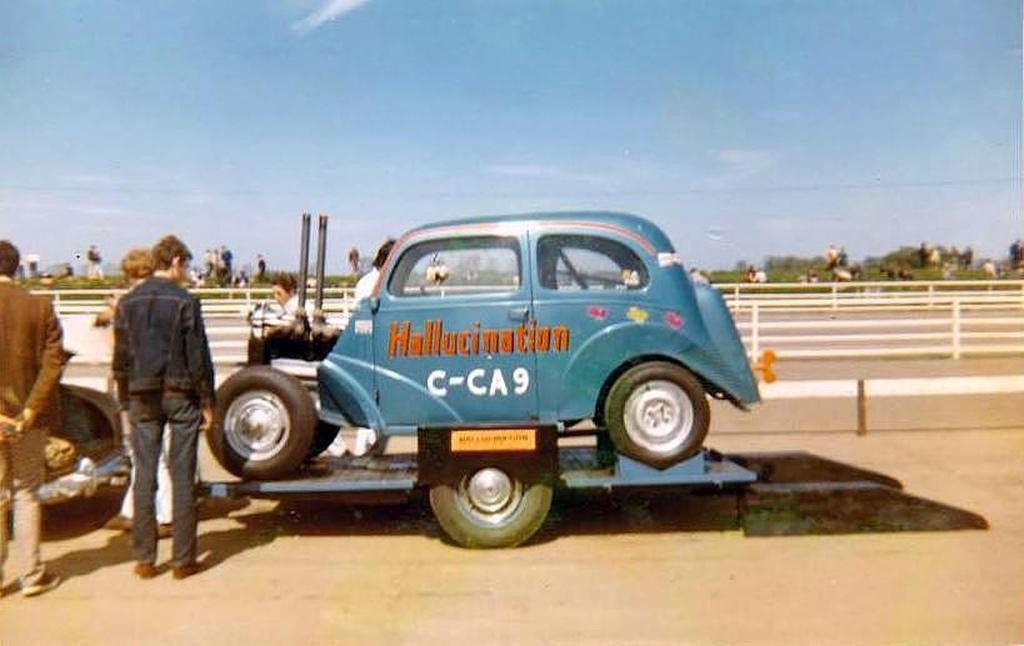 As told exclusively to Introduction: In this part of 'Ford Anglias of Yesteryear' we take a look at some of the Anglias for which we have been unable to find and make contact with the original Pioneers who built and raced them, or where they have unfortunately passed away. Some of those already published we’ve managed to contact due to the great help of Mick Gleadow who was able to find their details from an ancestral site that he subscribes to. For all the stories so far published special thanks go to John Hunt for doing the initial interviews with each Pioneer, travelling 100s of miles all over the UK, Nick Pettitt for his research and editorial work, Clive Rooms for his behind-the-scenes endless research, Chris Dossett for his work on one particular story which is to be published in the next few weeks and Simon Groves for the final layouts and for publishing the stories on Eurodragster. Nick and Clive have found as much information as they can about the remaining Anglias that raced in the 1960s and we have a work in progress on two more Ford Anglias of Yesteryear stories still to be published. As it's been over 50 years since they raced, we don't feel it matters if it takes a few more weeks to complete them. A couple of those featured here we did speak to but they preferred not to go back to the past which we fully respect and therefore have not covered their own personal stories. Should anyone reading this know of or is able find out the whereabouts of anyone mentioned in this part we'd be very pleased to hear from you. The sit up and beg Ford Popular or Anglia has been part of the modified car scene in this country since the 50s. Back then the way to go was take off and throw away the body, then fit a fibreglass sports body to the Pop chassis creating a special. There were many companies selling bodies for specials and tuning specialists like Aquaplane who could supply speed equipment to hop up the 1172cc sidevalve engine but it was still a bit of a sheep in wolves' clothing! Meanwhile in America, V8s were being shoehorned into our diminutive Ford Anglias and they were being raced, pounding the Drag Strips from California to New York. When Drag Racing hit the UK the Ford Pop became the obvious choice for aspiring Drag Racers who had seen them in the American Hot Rod magazines. Ford Pops were plentiful and cheap and once stripped out could be fitted with a Jag six or V8 without too much bother. In 1965 George Eastman, a GI from RAF Upper Hayford and Mark Stratton had fitted a 3.4 Jag in an Anglia and entered it for the International Dragfest at Blackbushe. With George being from the US and Mark from England they decided to call it the Anglo-American Anglia. It was entered in the Saloon Car 2501-5000cc Class and George was down to drive. Unfortunately, it never made it out of the pits as the scrutineer was not impressed by its lack of front brakes, a definite no-no according to the strict RAC rules at the time.