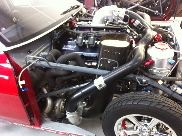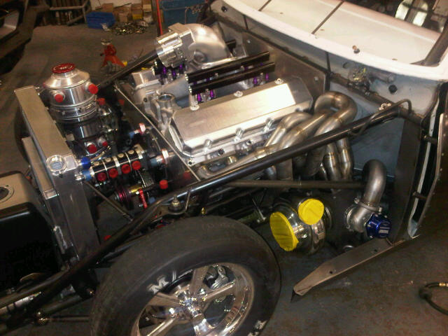The car is now back at its spiritual home. Yes, it's at Webster Race Engineering, where Jon will fit everything back on and finish the jobs that couldn't get done before the paint. This includes plumbing 8 (eight!) fluid transfer systems with the Goodridge hosing supplied by Cam Auto Developments, and all the wiring that needs finishing,including wiring all the sensors by Scattergood and Johnson. At the moment Dave at EPS Motorsport is very busy and might not have time to do the loom himself, meaning that Jon will have to run all the wires to their various points in the car ready for termination by Dave. The engine is still causing me headaches. Most of the measuring work has been done by Knight Racing Services but they are now not able to finish it in time for our debut, due to them being oversubscribed with work. So Marc at Lamude Racing Engines has kindly stepped into help getting the team to the ball! The engine is now in his capable hands and he's assured me it will be ready by next weekend, barring any disasters. A potential fly in the ointment is that I'm waiting for some valve springs and big end bearings,and I have to trust some shipping companies to deliver on time! Also the planned dyno run has gone out of the window. Time constraints mean we cannot spare the engine to the dyno even for a few hours. The dyno will be a mobile one,that is red in colour... Apart from that we're well on course for the May 20th debut at the VXR sprint night at Santa Pod raceway, followed by a weekend of testing. Then the big one at the Main Event, again at Santa Pod. I'd like to thank everyone who's been following the build so far. Pretty much every comment is positive,which is great for me and the team behind the build. It'll be a sigh of relief from all the camp when it's finished, that's for sure. More soon... Thursday 31st March 2011: Debut delayed. It's three weeks to Easter,and the bad news is we're not going to make the Thunderball. Everyone involved is very disappointed with decision I've had to make, but in reality, waiting three months for the heads to arrive made it incredibly difficult to finish the car in time for its slated debut. Not having time to test before the Thunderball was the main reason for delaying the debut, as we all felt it would not be the best idea to go to a championship meeting with a brand new, untried car! We're now aiming for the Peak performance weekend on the 21st/22nd of May, a week before the Main Event. Fast Motorsports' Shane Tecklenburg's flight is booked from LA, so we have to make that date. Work continues at a pace with the car. It is currently at DC Customs to finish the bodywork and lay on the paint and graphics. The body and chassis are due back at the Webster Race Engineering workshop just before Easter. When that happens Jon will be putting the whole car back together again, along with Dave Rowe of EPS Motorsport who will be completing the wiring of the car. The engine is in the safe hands of Knight Racing Services who are collecting the final parts required for trial assembly as we speak. We did have a minor disaster when a miscommunication between myself and Pete resulted in a set of pistons that were too short in compression height. This was resolved very quickly with the help of Dakota Parts warehouse and GRP in the USA. They had a longer set of rods made and shipped in three days. This was a blessing in disguise as our rods where a tad too short anyway, due to the Pro mod rule change making us change the crank stroke to comply with the new cubic inch limit. So, sorry to disappoint everyone who was looking forward to the debut at Easter but the car has so much time and money in the project that no-one wants to rush the job at this critical stage in the build. Besides, it's only three weeks away from our initial date so not long to wait. We will be posting video of the first fire up of the enigne on the Knight racing dyno to whet your appetites in approx two weeks time. More news soon. Sunday 6th March 2011: Ready for paint. It's been seven weeks since my last blog and the car is a last ready for paint! Obviously because everything is a one off you inevitably get delays with some items. The team at Webster Race Engineering have been superb in the way they've tackled the problems that have confronted them. Over the past seven weeks Jon and the crew have had to get around things that just haven't gone the way it was planned.