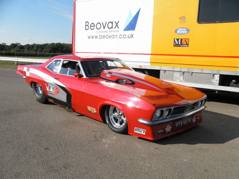 We had a very constructive day. We broke the world's quickest street legal car record with a 6.714. After the problems at the Main Event last year it has taken us a year to get back to what we have been striving for. The car could go so much quicker, but on the second pass when I shifted gear nothing happened and we think it is the convertor blowing through. We will take it out as the crew need something to do. After the runs we checked the valve train which was in perfect condition thanks to the work that Mark Lamude did over the last month and Shane Tecklenburg who has done an awesome job on the tune-up. Shane is over from California and it's his second trip to Santa Pod - he was here last year. We have known each other for two and a half years and have worked for for a year and a half on the electronics hardware, programming and calibration. Shane said last year when we were ramping up and the engine broke, it felt like a missed opportunity and we didn't want the car to beat us. It was unfinished business. Shane has me being his ears and eyes for much of the time and uses remote connection to my laptop to analyse the data and change the settings. There are other things at the track that may change and influence you rightly or wrongly, but if it is just data you are looking at you get a clearer picture and there is not the pressure away from the track. At the Thunderball Shane looked at the driveshaft speed and the position of the sensor on the chassis. Here we used a setup very similar to the one at the Thunderball and seeing the track I am glad we used what we did rather than something softer which the data implied we should have. Shane deals with Motec engine management systems and data systems having worked with them for five years and been a consultant using those systems for the last six years. Motec is the only EMS which will allow remote working and Shane tells clients where to mount sensors on the car and to match the engine. I first met Shane at Heathrow where he was passing through and was thinking about who I should use for a turbo V8 methanol application. I bought equipment direct from him so that he knew I was serious about working with him and the relationship has gone from doing business to friendship. Shane advised exactly what he wanted done and he calibrated them remotely a week before the race. I have a dream team - all of those who work on the car I regard as the best in their field. With those, despite the small number of runs we have made, it is not too hard to be successful. After the problems last year we put our best foot forward and went beyond what I thought we could afford to meet our goal for the event. The car was designed to run five second quarters but the street equipment adds 400lb to the weight above the minimum weight of 2650lb. It is street legal and British, its own entity and has a degree of identification that is very high due to the exposure it has had in the media. Companies like Vauxhall want to be associated with it. By being street legal, we think it is seen as an underdog. It is more recognisable than other cars in the class and seen as a development of the old car. A retro production version would be awesome. Sunday 15th April 2012: What a weekend! One week on and the team are just recovering from an epic weekend at Santa Pod raceway. At last the car has shown some of the pace that we all knew was in it. The winter upgrades and fixes have worked very well, particularly the Owen Developments -supplied Precision turbos, and at last the cylinder heads! Unbelievably we were ready a week before the Thunderball. That's the first time that happened for a long time. Big thanks to Crew Chief Tony Grayston for spending 2 weekends on the trot helping to put the car back together. Coming to the meeting our goal was just to get down the track to gain some invaluable data, particularly as we'd only managed one full throttle all the way down the track pass up to then! Shane T's instructions on the Friday were to launch easy and just make a full pass. Unfortunately the car span and shook the tyres, which kicked the car over towards the centreline and it was on and off the throttle to the end. That meant no full data, but enough for Shane and Jon Webster to look and adjust for the next run. The good thing was that the car had indicated to me that it had very decent pace now,and that when we'd figured out the startline it would go down the track fairly swiftly. Saturday's runs were more of the same. Data on this car is our friend. Because we have a myriad of sensors it means that everything on the run can be checked over, and tuning becomes less of a guess, and more of a good judgement. The couple of qualifiers on Saturday gave us a very good indication of what we could achieve for the weekend. 219mph isn't shabby for a 3012 lb car, even more so as it's not massively aerodynamic either! This run had set us up for Sunday's runs. Unfortunately we only got one because of the inclement weather. But what a run for us. Our first 6 sec run,at 218mph to boot! That equates to 2980hp so far, with plenty more to come. So two full throttle passes in, we're in the 6's,and almost to our goal mph of 220mph for the season. That run, along with the mph we did, made the car the first street legal car in the 6's in Europe and fastest and quickest street legal car in Europe, and the world's fastest street legal car. All that is left is the world's quickest and we have the full set! Did I mention we qualified third in MSA Pro Mod? That is truly the stuff of dreams for our team...What a shame the weather curtailed the elims on Monday. As usual we couldn't have done any of this without our crew, consisting of Deb, Tony and Jake Grayston, Art Stuffins, Rob Kearns and Will Perry. On tech duties this weekend were the legendary Shane Tecklenburg, Jon Webster and Marc Lamude, as well as Al Cook and Mark Harrison from Owens who popped in on a few occasions to make sure everything was 