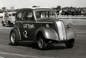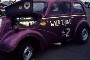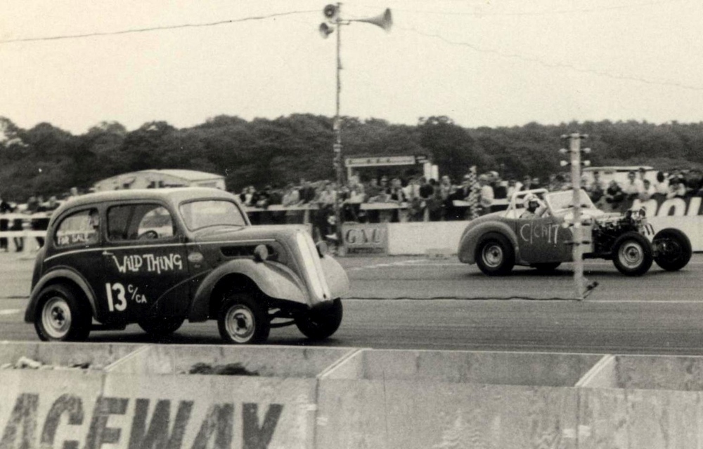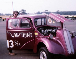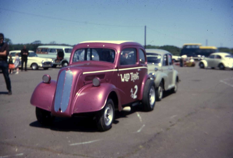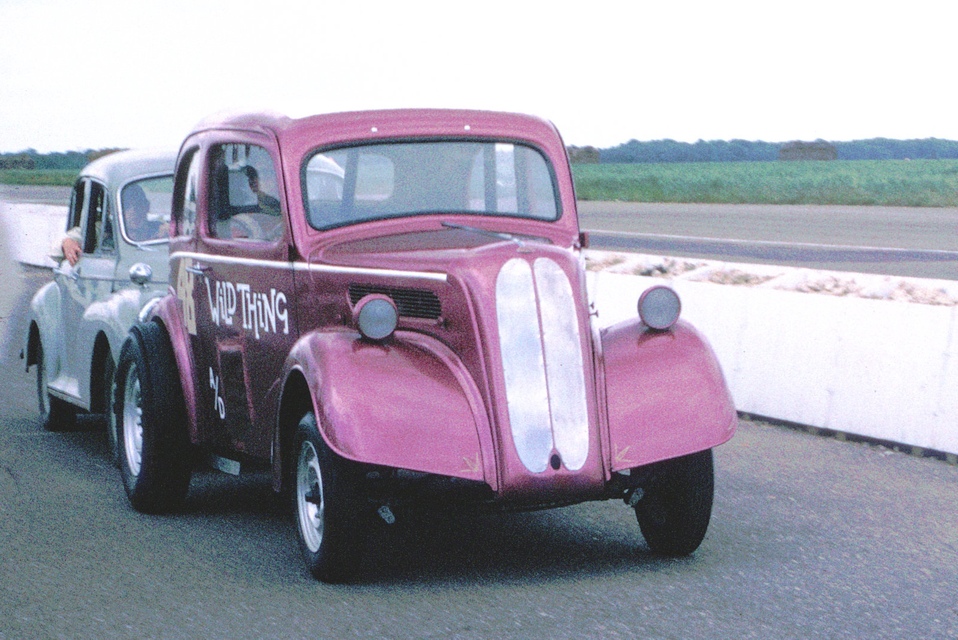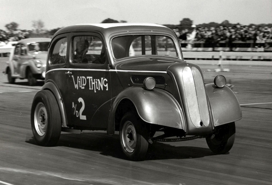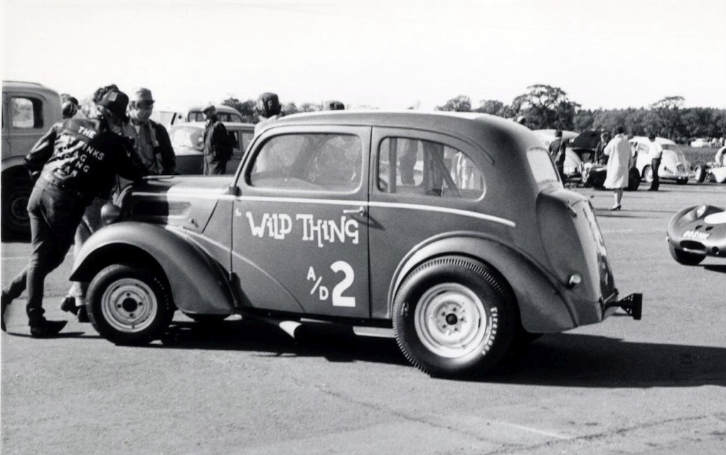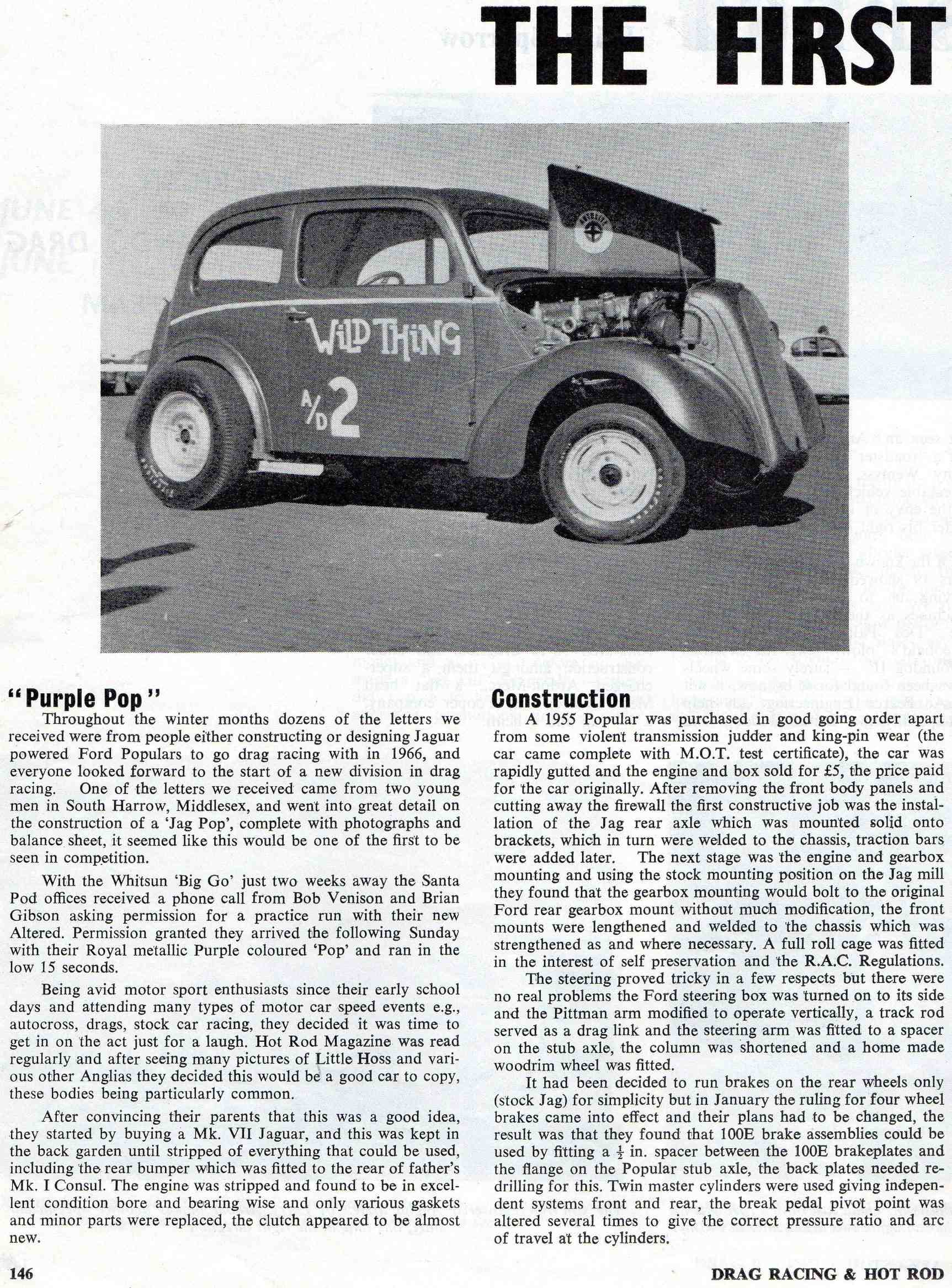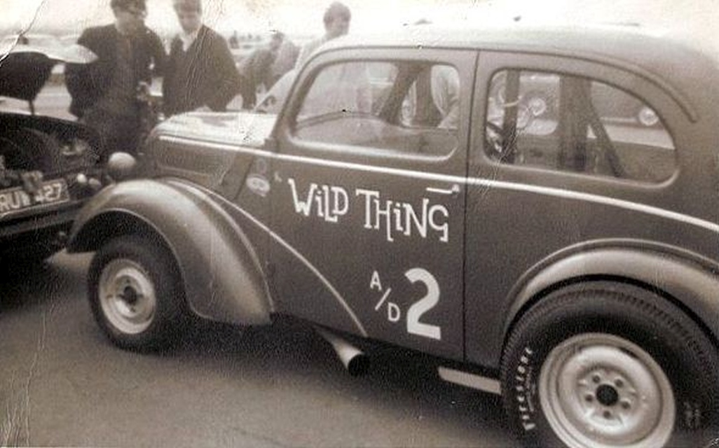 Brian Gibson and Bob Venison got interested in hot rods and drag racing in the early 1960s and were inspired by the 1964 Dragfest to build a gasser. Learning as they went, the Jaguar-engined Wild Thing Ford Pop ran at Santa Pod in 1966 and 1967.
