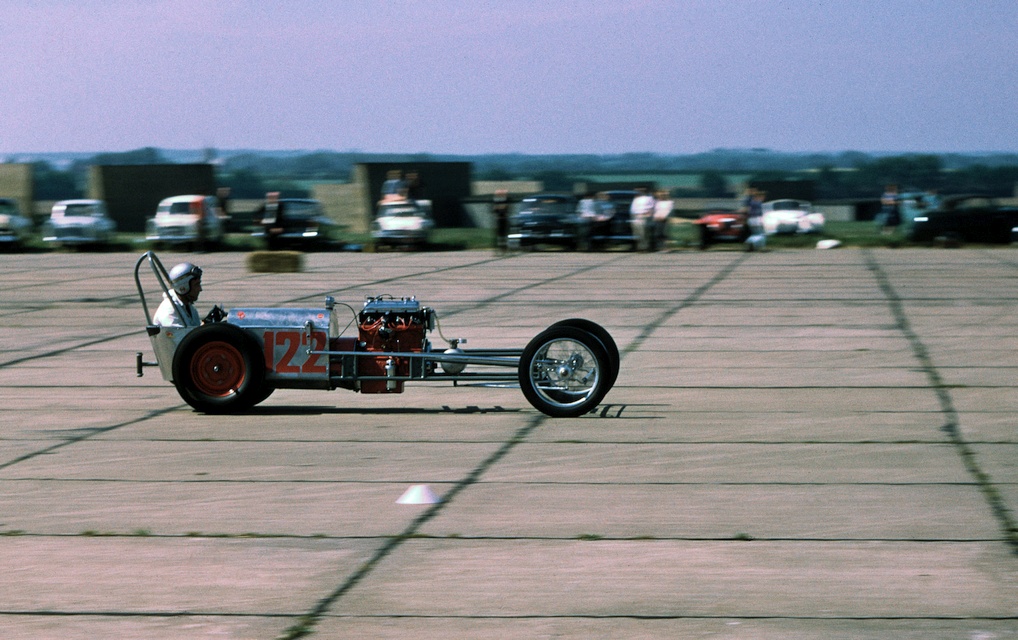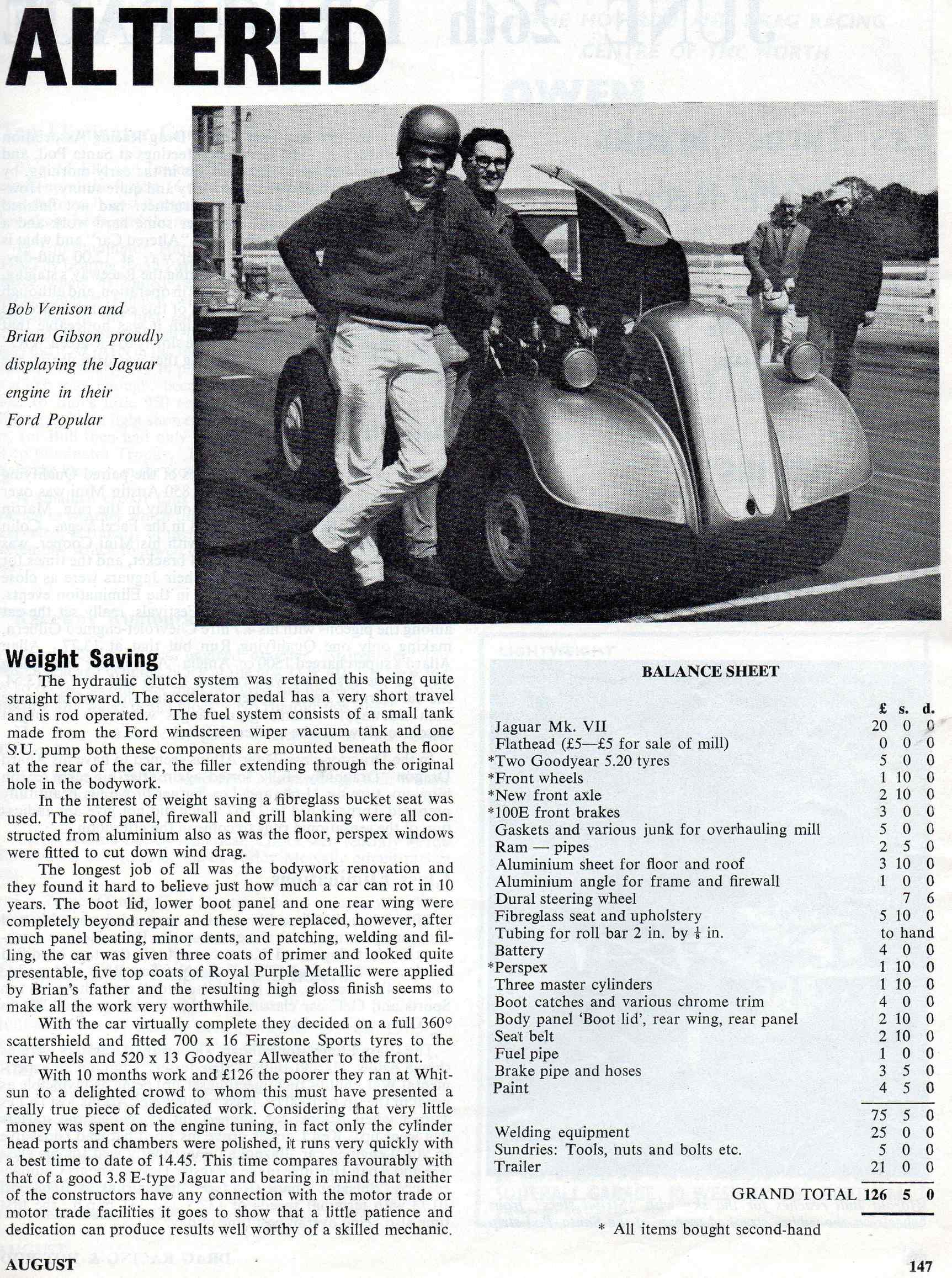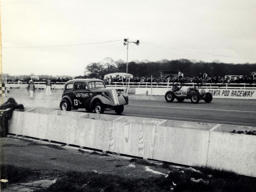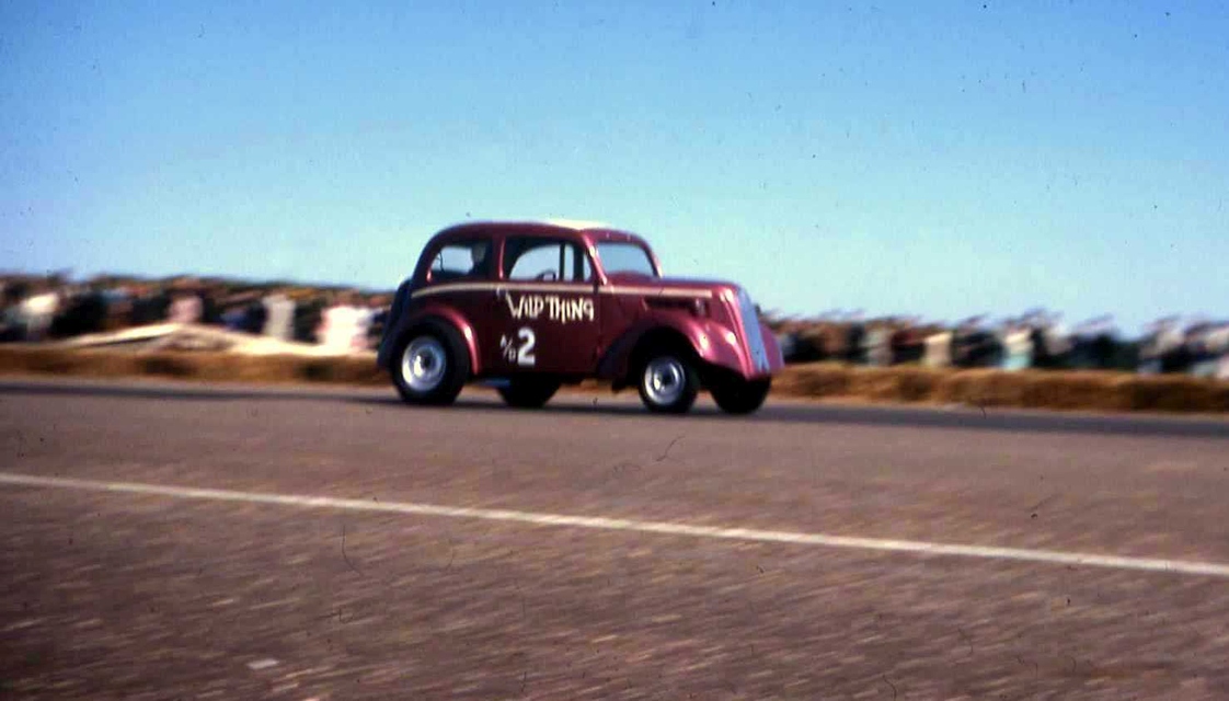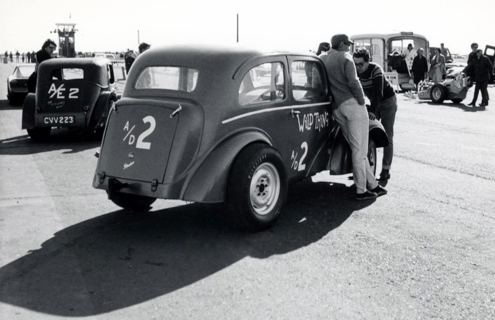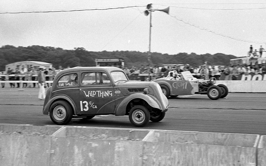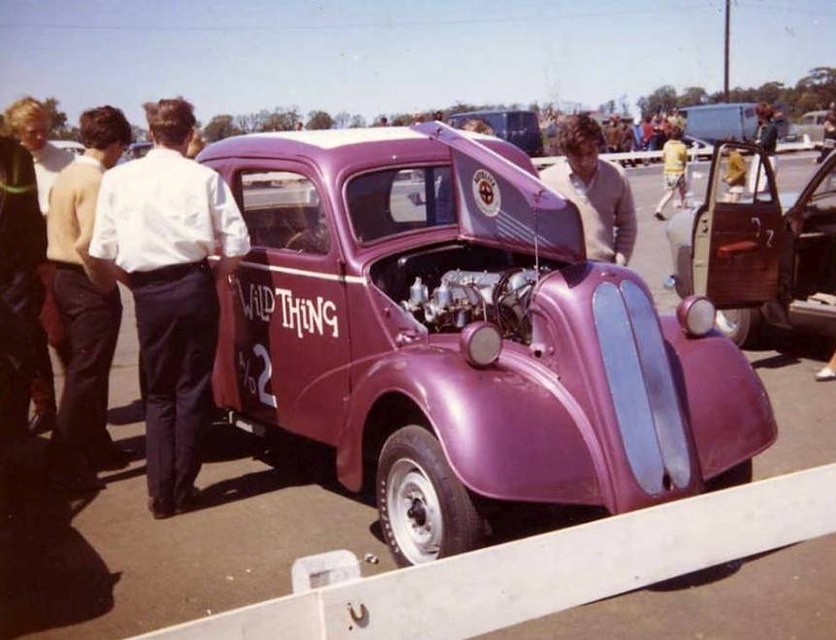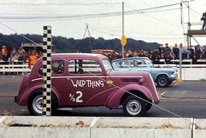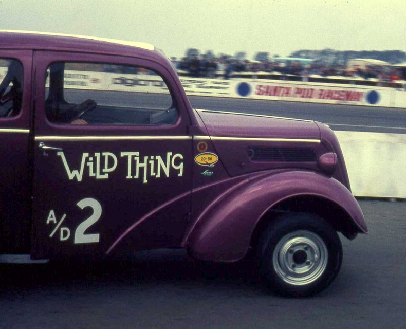 Brian Gibson and Bob Venison got interested in hot rods and drag racing in the early 1960s and were inspired by the 1964 Dragfest to build a gasser. Learning as they went, the Jaguar-engined Wild Thing Ford Pop ran at Santa Pod in 1966 and 1967.
