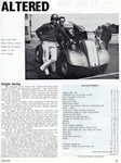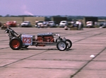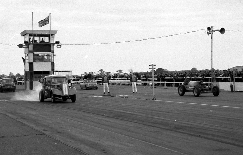 In the early days the strip at Santa Pod was pretty bumpy and our car spent more time off the ground than on it at the top end of the strip. On one run with Bob driving, it was caught by a cross wind while off the ground and blown sideways. Bob’s skilful driving put it back down on the straight and narrow. After the run scrutineer Captain Tom Hales came up to us and said the experiment was over and from now on all Altereds must have suspension due to the incident which to him looked very dangerous. It looked more spectacular than dangerous to me. Bob took it upon himself to start a campaign against the RAC to allow Altereds to run without rear suspension as they did in America, resulting in the RAC agreeing to keep the rules as they were in America at the time. The Gassers in America did have suspension as they were a production-based class whereas Altereds and Dragsters were pure competition.