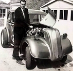 We used the unofficial name of The Rat Finks Drag Racing Team; I don’t remember what triggered it off. We saw adverts in Hot Rod for Ed Roth Products, Ed was the home of the Rat Fink and we took a shine to all this. It was hard to import stuff then, we couldn’t afford to anyway so we made our own hats. There was a stall in South Harrow market that sold government surplus stuff and we got some jungle hats. They were camouflage print and we painted Rat Fink on the front of them. At St Martins Court in London there was a shop which sold American motor books and accessories. They had tee shirts in a pile and you had to buy the next one off the pile, you couldn’t choose one. It turned out to be a Rat Fink Revenge, sticking pins into a toy. Being precious to me, I didn’t wear it much and I still have it today. So, when we started racing, we called ourselves the Rat Finks Drag Racing Team but soon realised if we entered an event as a team, it cost a lot more than entering as an individual, so we stopped using it. In 1967 we ran the car for eight meetings at Santa Pod. Our best times were 14.25 and 98.52mph, not quite reaching the ton. Then I had ambitions to step things up. We had acquired an 8mm cine film from Watford Motor Accessories featuring ‘Pure Hell’ a supercharged Chevy engined Austin Bantam bodied Altered. It was filmed both from outside and using an onboard camera. Back then it was a matter of spinning the wheels to get the revs up rather than using a slipper clutch. In the onboard shot you had smoke coming out of the cockpit in front of the driver which we found quite amusing. Here’s a link to the Pure Hell film... I was really taken by this car and wanted to build a replica. A couple of others had built similar types of cars over here but for my money they were not as good as the real thing. We wanted to have a fiberglass replica Bantam with an injected Chevy engine.