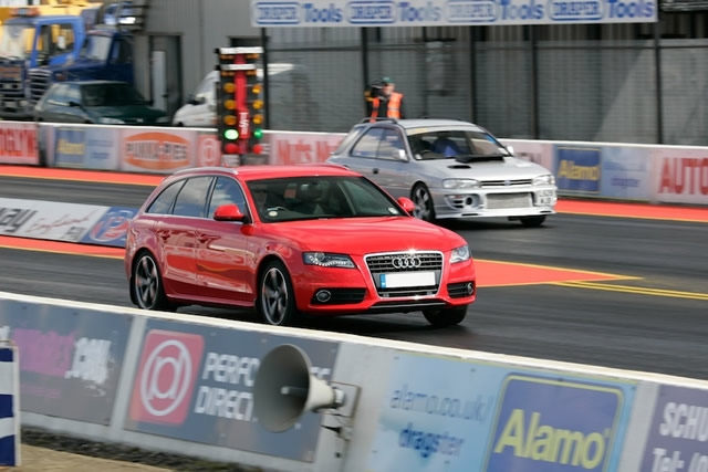 So why am I now a drag racer? Well, after many years being a spectator then commentator, I have finally driven down the famous ¼ mile at Santa Pod, and what a great experience. The event was the beginners' dial-in day held on Saturday 6th April, organised by James Forster with a total of 23 beginners taking to the strip including Chris and Rob Creswell, yep, two more Creswells to look out for as Dad is none other than multi class winner Pete Creswell of Super Gas and Super Comp fame. Also present were Kirstie Tramm from Eurodragster.com and Nikki Skinner representing Nitro FM. First up was a classroom session with Santa Pod chief starter Ian Marshall, along with Paul Marston and Mick Howling from Paul Marston Racing. Also on hand to help us was current Sportsman ET champion Craig Wright. The emphasis of this classroom session was consistency with one of the first questions being asked was ‘who here has manual transmission?’ Yep, that’s me, and a few others...this apparently puts me at a disadvantage due to manually changing gear at the same time and revs on each run, it's much easier to bracket race an auto. Oh dear, but hey, lets see shall we? We then drove around the pit area to warm our cars up ready for qualifying. Into the pairing lanes we go, and to say I was excited was an understatement. My heart rate had shot up as I awaited my first trip on the dragstrip. Hang on, dial in, what on earth do I think my car will run? After many discussions with my fellow beginners, most of whom did not have a clue what their car would run I opted for a 17.20 dial in for my Audi 2.0 TDi Avant. To the line I went and now my moment had finally arrived. The tree counted us down then GO...off I headed to the top end as quickly as possible. Result, 16.69 breakout, erm, misjudged the performance of my car a bit there so for my next run a dial-in of 16.50 was chosen, but another breakout run, this time a 16.41. Hmmmmm, two breakouts, so for my final shot I chose a 16.30, surely I cannot breakout again, which I didn’t as a 16.55 was my time. Wish I had an automatic now. So here we go then, my first ever actual race, and my opponent was Iain Phillips, a regular at the RWYB events with his Subaru Impreza. I dialled in a 16.45, Iain with a 15 something which meant I had the head start. I honestly thought my heart was going to burst out of my chest as I approached the pre-stage line. Must cut a good light, must cut a good light was all I was thinking. First amber, second amber, third amber, go, I’m not waiting for the green as having talked to some of the racers they all said go as the third amber comes on, this I did and thank god no red light so at least that worked. This is great fun, flooring your car and just going flat out without having to worry about speed cameras or speed limits. As I raced up the strip I was looking in my rear view mirror and Iain didn’t seem to be catching me, so I eased off at the top end as I didn’t want to break out. The win light came on in my lane and YES, I had won my first ever race with a time of 16.66 on a 16.45 dial-in. Back to the pairing lanes we headed and a post race chin-wag with Iain, who revealed that he had missed a gearshift. Round 2 and a very tasty Ford Mustang, driven by Matthew Moxon, was my next car to try and beat. I decided to stick with the 16.45 dial-in, a 0.11 reaction time and I felt like it was a good run, but as Matt’s Mustang was a strong 13 second car and it closed in at a rapid pace, but I felt that I had him so eased off once again, but misjudged it and Matt went by just before the line. I must admit that there were some choice words shouted inside the car in the shut-down area, but I would imagine that I’m not the first to do this. Having studied the times I broke out anyway, running a 16.32 and don’t forget I lifted early as well, so frustrating but immensely enjoyable. So that was me done for the first eliminator, out in round 2. Matt went all the way to the final but lost out to Richard Whelan, more on Richard later. Back into the classroom we went, with more superb tips and very wise words indeed from our mentors, then back out onto the strip for three more qualifying runs. Now I’m really trying to be consistent, looking at the rev counter and changing gear at the same point on each run, and at the same time trying to get good reaction times, which is more difficult than I thought, big respect to all racers here, I now know what it is like. Dial in set for 16.25, first run 16.33, not bad, second run 16.28, well happy, only 3/100ths off dial-in, 16.11 breakout in the third. On to eliminations, and first up I was against a very consistent Jeep 4 x 4 driven by Mike Oates. It is one thing being chased, totally different chasing another racer down as I had to wait what seemed like an eternity as Mike set off two seconds before me, not only that, but I was a bit late off the line, but made it through with a 16.41 early shut-off as Mike had his own consistency issues. Round 2 next and another Mustang, this one driven by Alan Medley. This was so close at the top end but I made it through with a decent light and a 16.32 on a 16.15 dial. Round 3 then and Evan Green with his very rapid Renault Clio 182 Cup. Big dial-in difference here as I had roughly three seconds head start. I must admit that the adrenalin was starting to get to me as my reaction times were slipping, a 0.280 was not good enough but I kept on pushing the car to the finish gantry, but no sign of the Clio at all so I eased off to a 16.49 win. I’m now in the semi-final, and YESSSS, a bye run into the final. A chance to try and pull a great light, well, a 0.16 wasn’t too bad, but the time wasn’t so good. The big one then, the final and you read the name earlier, Richard Whelan made it to two finals in a row and he was going to be tough to beat. I seemed to be slowing a bit, so a 16.25 dial-in was selected, Richard was in the 11’s so I had almost 5 seconds in 