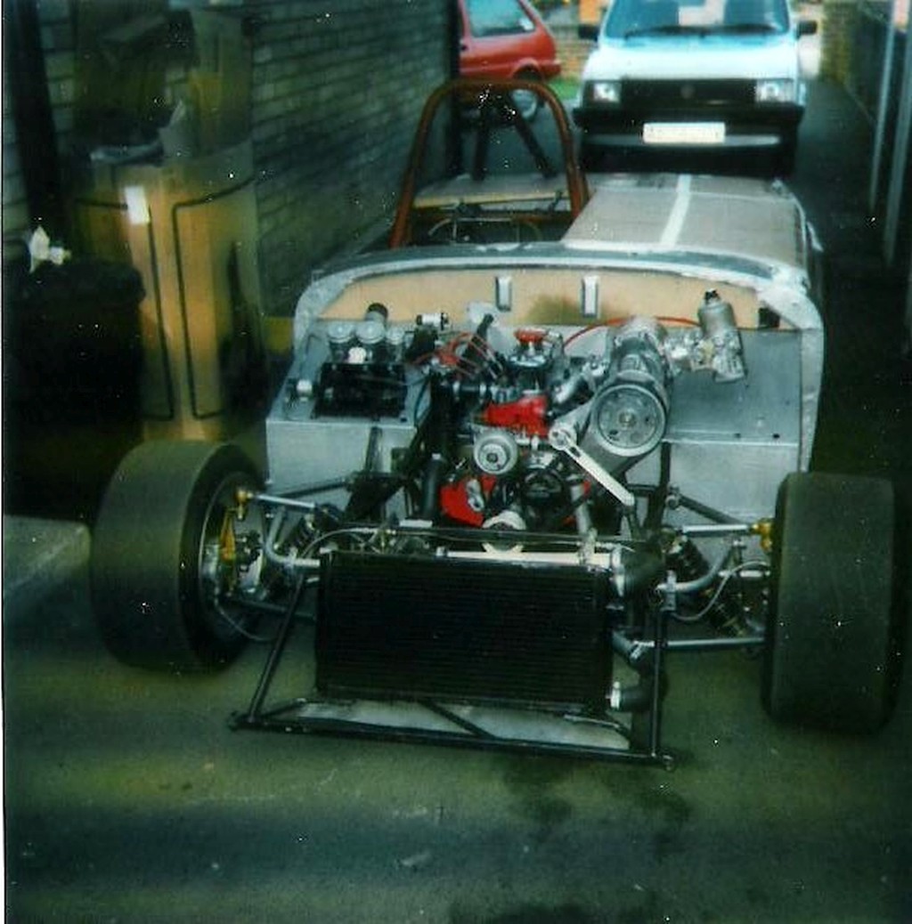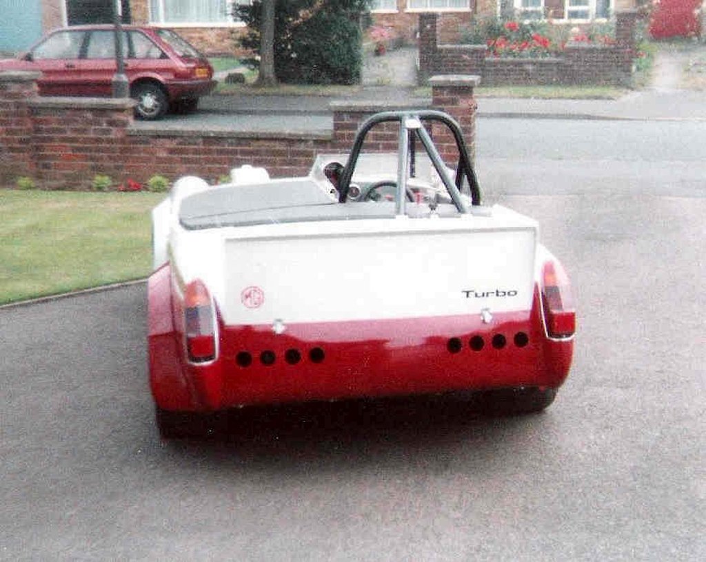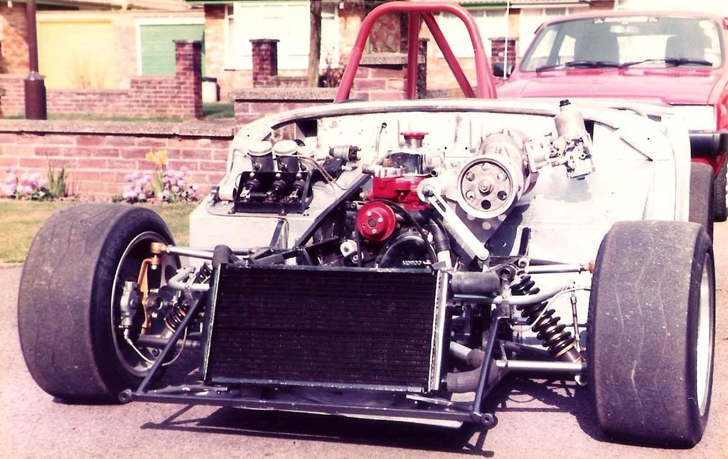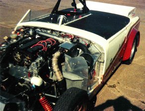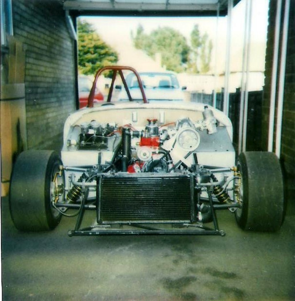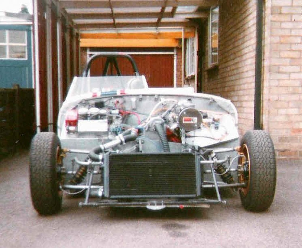 We had a system with a blow through turbocharger on there. We ran that quite successfully for a while but it got to be a bit too much for the back end of the Midget. A bit of the monocoque body started buckling. When I investigated, the people who had started to build it had actually put a lot of fiberglass over what were in fact rusty panels and it started to give up the ghost. At that point I pushed the Midget away and got the Berkeley out again and thought I'll reinstate the Berkeley which is now in its current form.
