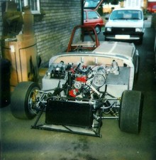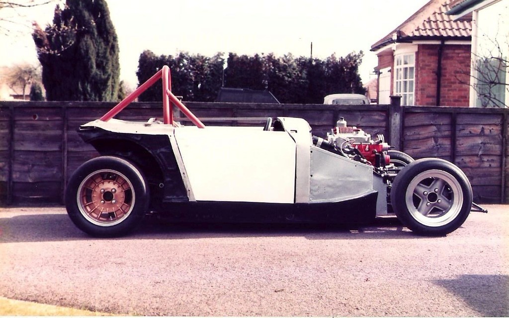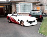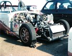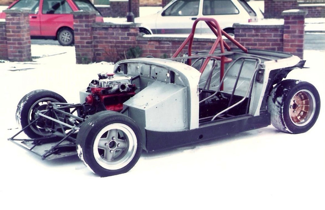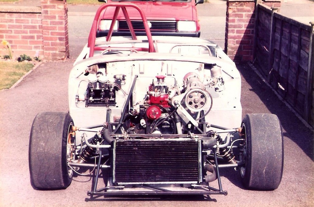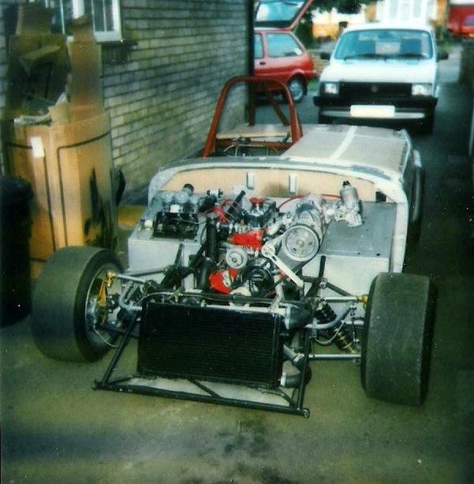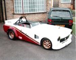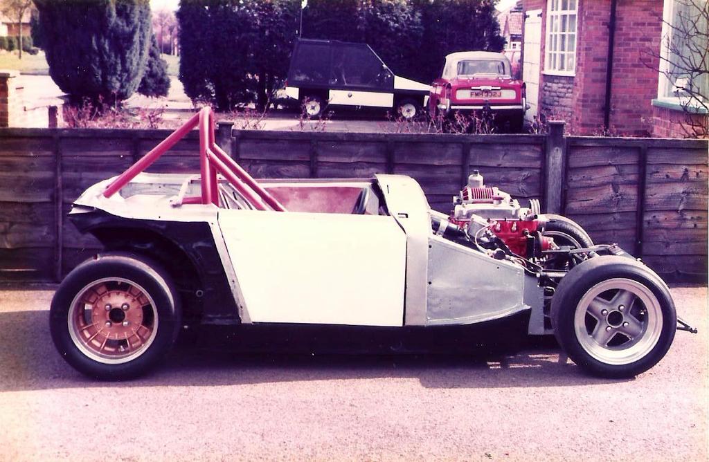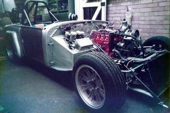 We had a system with a blow through turbocharger on there. We ran that quite successfully for a while but it got to be a bit too much for the back end of the Midget. A bit of the monocoque body started buckling. When I investigated, the people who had started to build it had actually put a lot of fiberglass over what were in fact rusty panels and it started to give up the ghost. At that point I pushed the Midget away and got the Berkeley out again and thought I'll reinstate the Berkeley which is now in its current form.