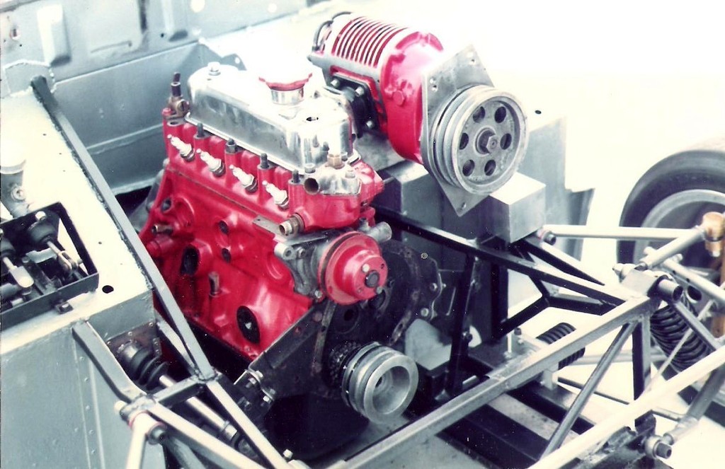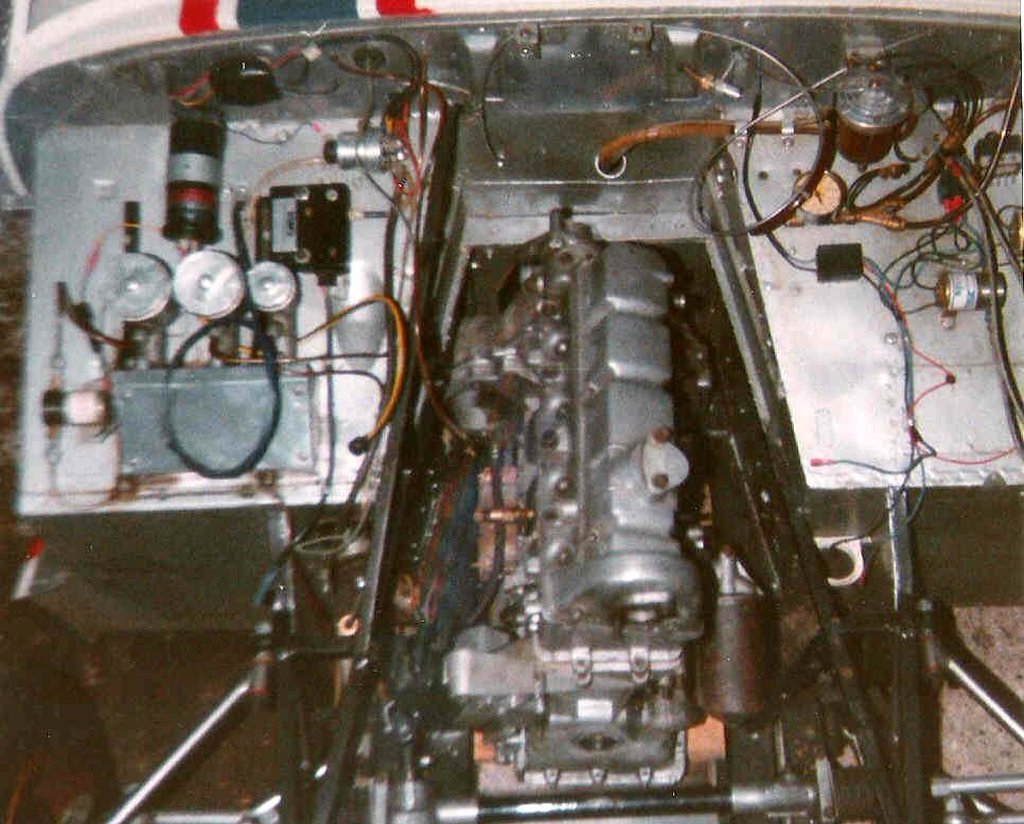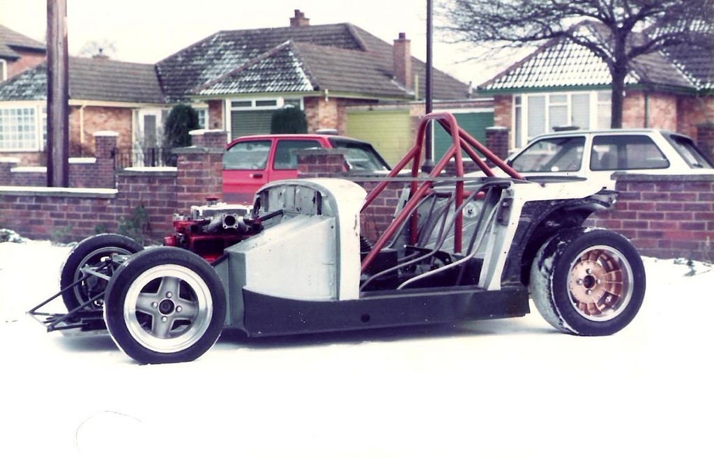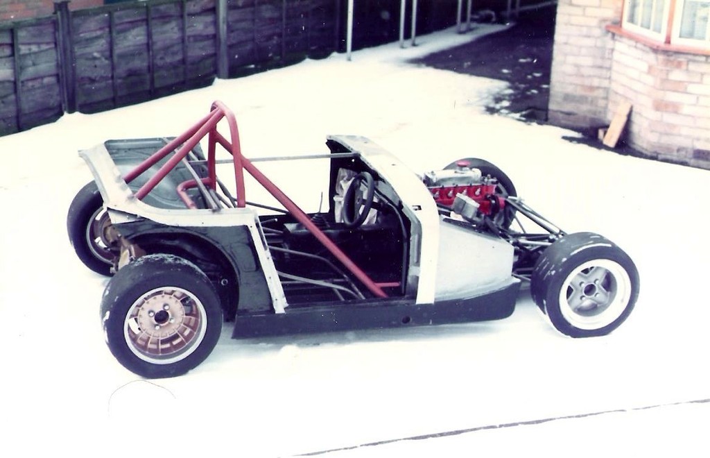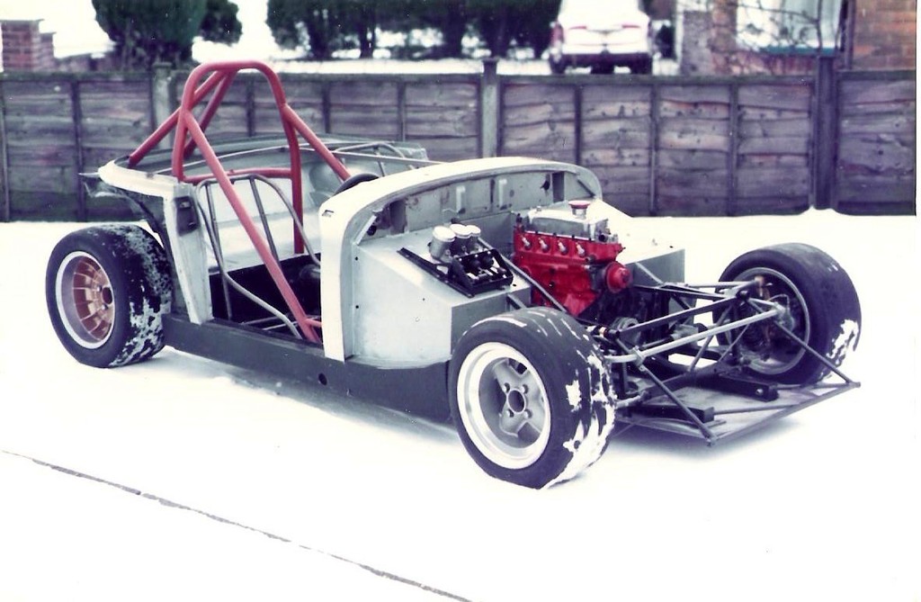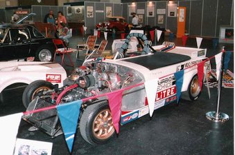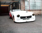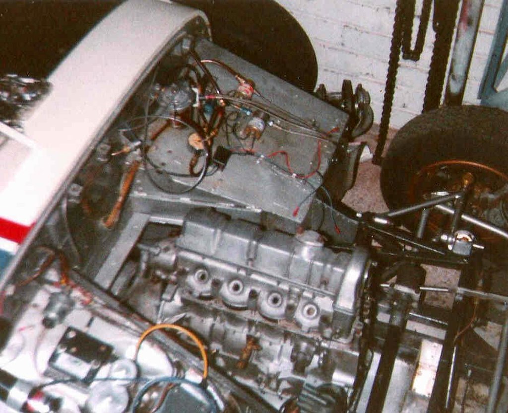 We had a system with a blow through turbocharger on there. We ran that quite successfully for a while but it got to be a bit too much for the back end of the Midget. A bit of the monocoque body started buckling. When I investigated, the people who had started to build it had actually put a lot of fiberglass over what were in fact rusty panels and it started to give up the ghost. At that point I pushed the Midget away and got the Berkeley out again and thought I'll reinstate the Berkeley which is now in its current form.