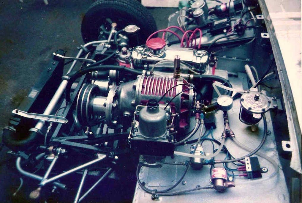 The biggest failing with the Imp engine was the cylinder heads. Some of them were paper thin around the water jackets and the cylinder bores were sealed with Wills Rings which had a habit of failing. It was then I got talking to Nick Stevenson (part of the Phoenix Four to save British Leyland) and with his help I got on permanent loan from Longbridge a twin cam ‘K’ series engine and all of the injection system. We put this into the Midget and I adapted an inlet system from a turbocharged ‘A’ series engine.