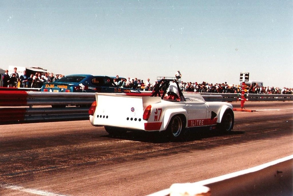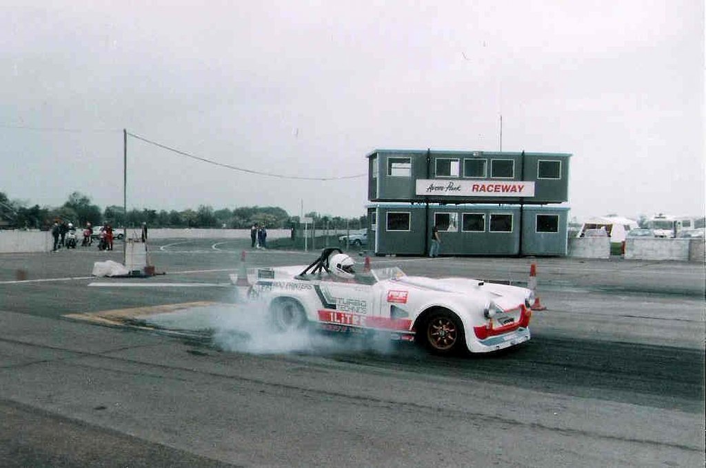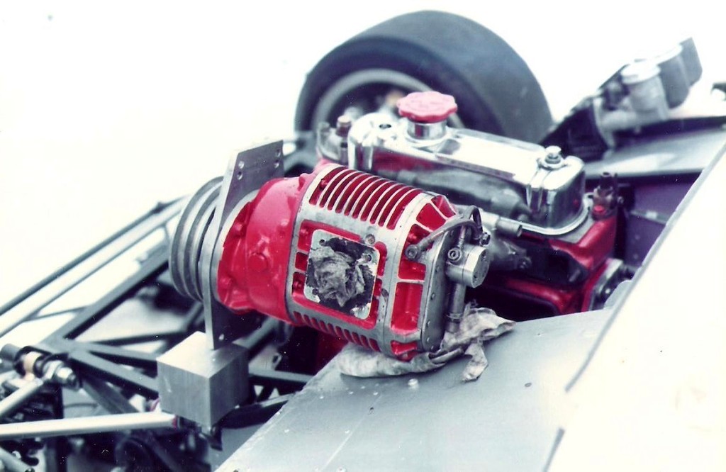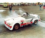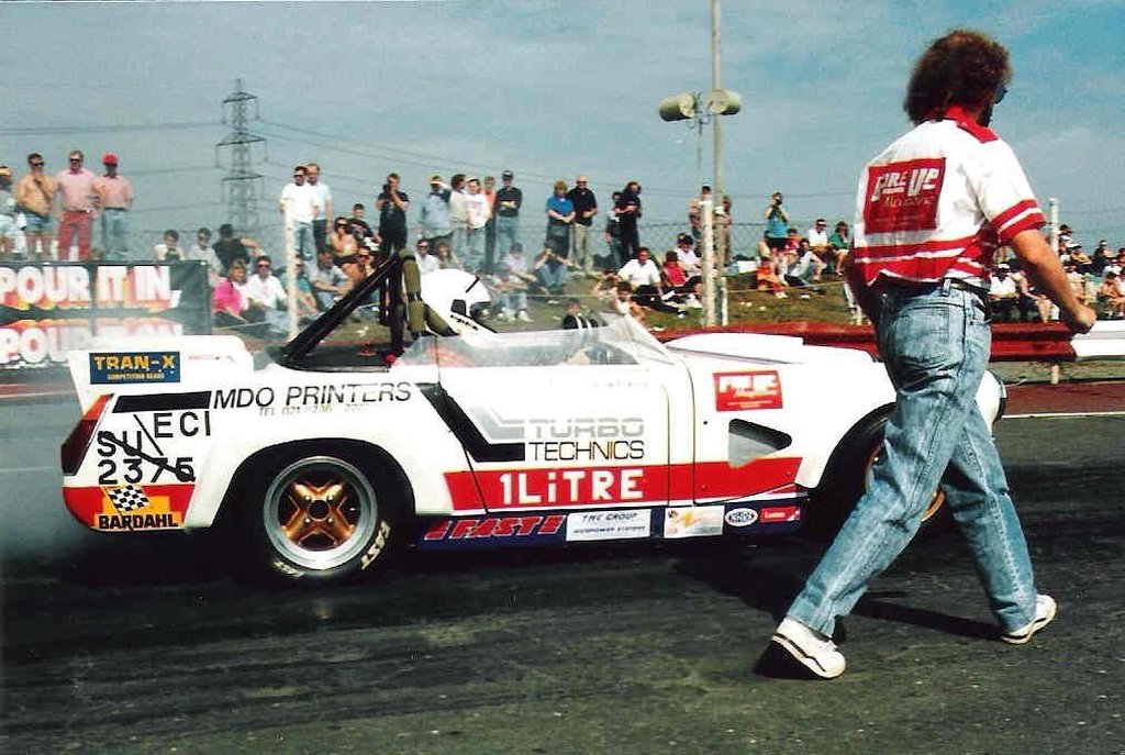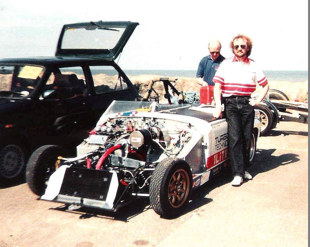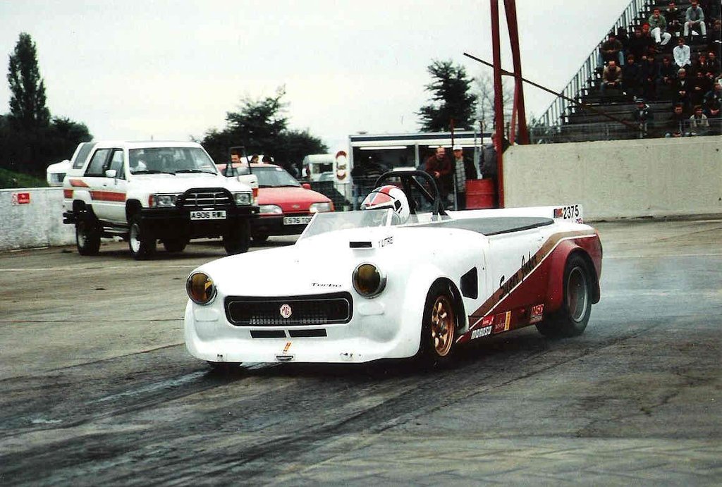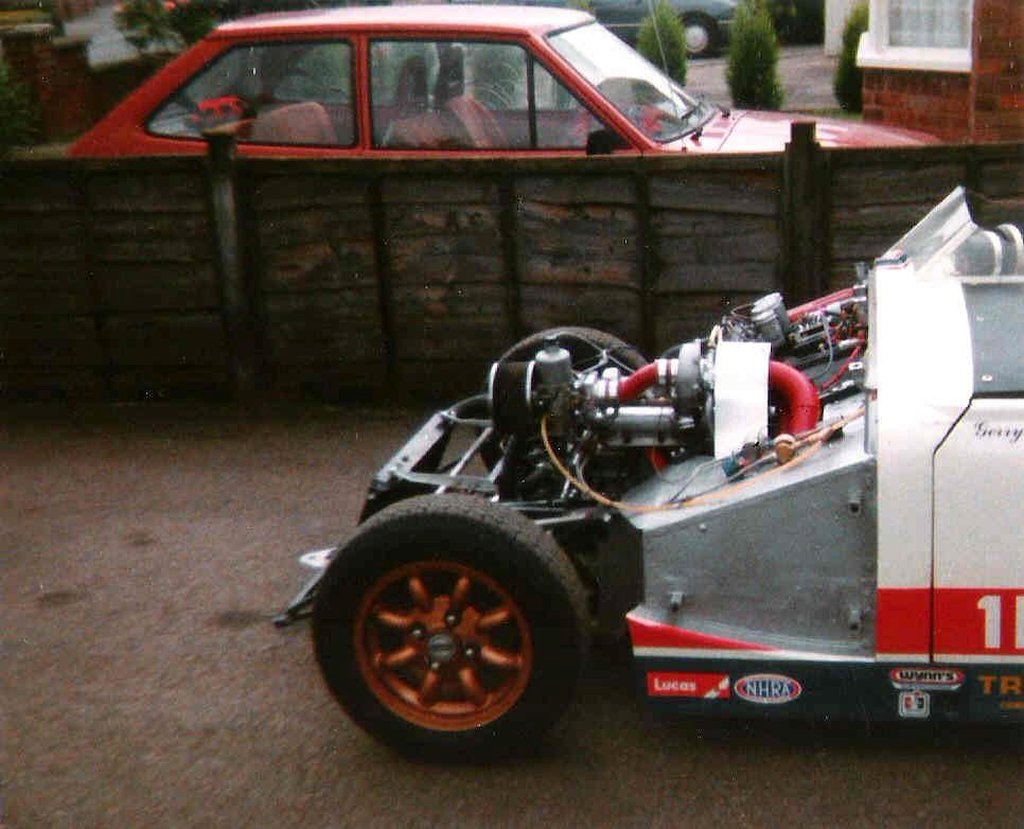 I got to the point with the Berkeley where I’d gone way down on the engine size, still a BMC ‘A’ series engine but its only 850cc now with a tiny turbocharger, I’d adapted it to run 12’s to low 13’s to that specification but it never got there, the best we got out of it was a 13.9. One reason is the turbocharger takes time to speed up and it bogs on the line, gets to the 1/8th mile and it takes off. I thought I should get it back to somewhere where it should be once I picked back up on the Berkeley again, capacity wise. I’d done one or two modifications. I’d realized the one problem was not being able to get off the line. The slicks that were on there were not helping, they were just sticking. So, I put road going tyres on the back again and also added some Nitrous when you’d got full throttle. The Nitrous was fitted so that there was enough pressure in the inlet system which should have helped it off the line, then when it got to about 5 to 6 lbs pressure in the inlet system the Nitrous cut out and the turbocharger took over but I never got to try it. The theory is great but whether it would work in practice I’ll never know.
