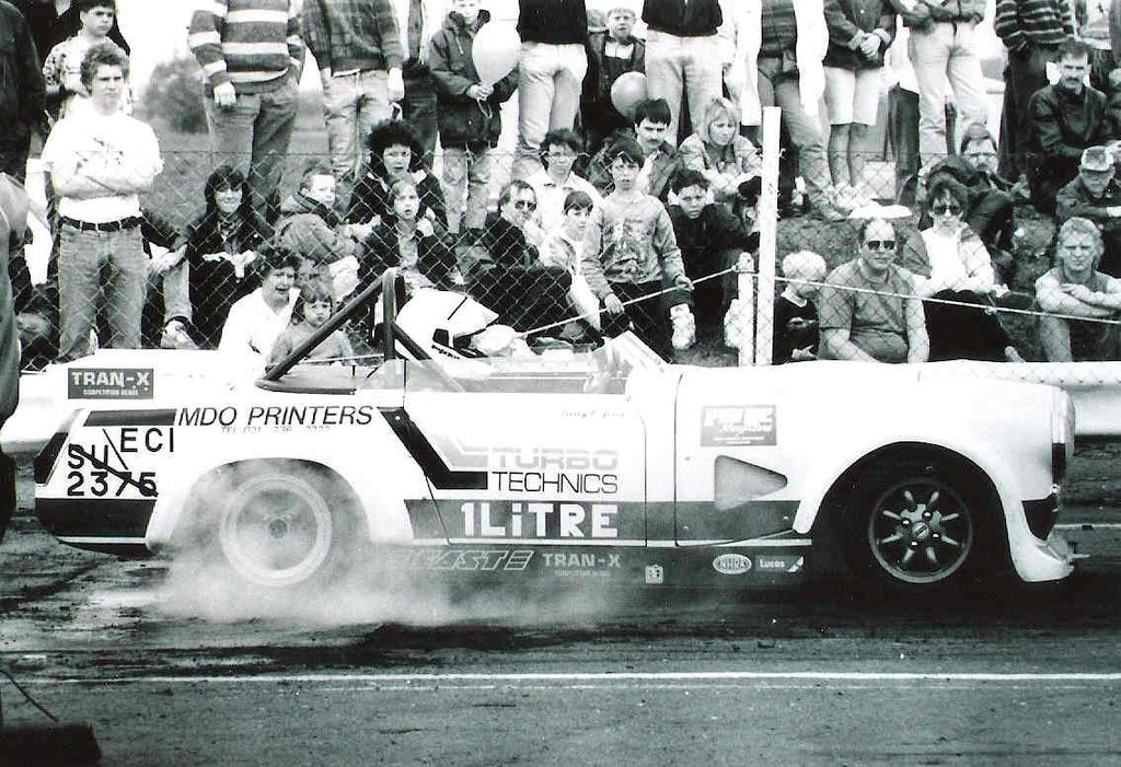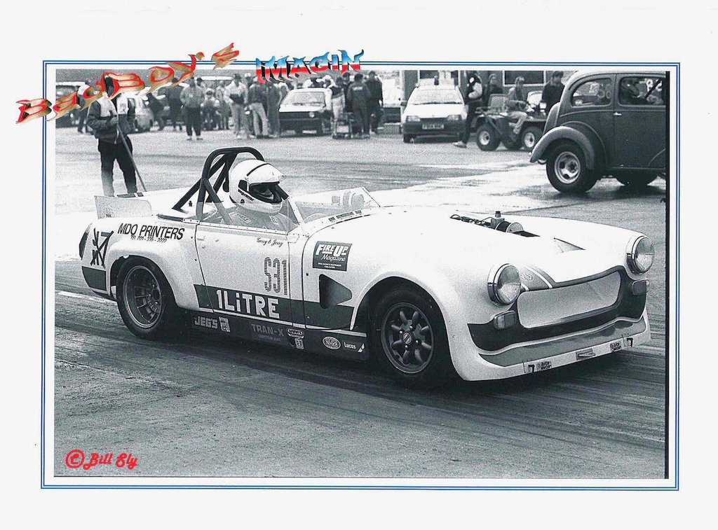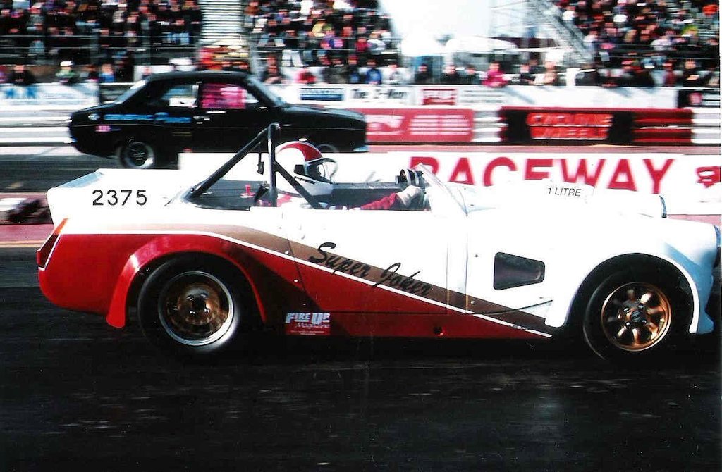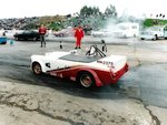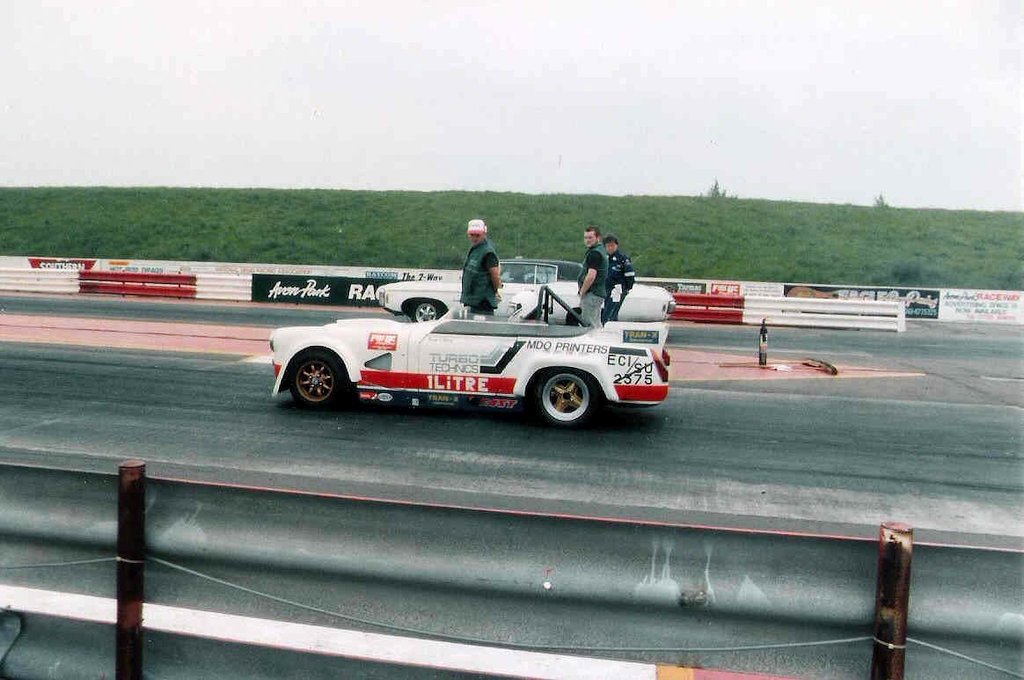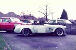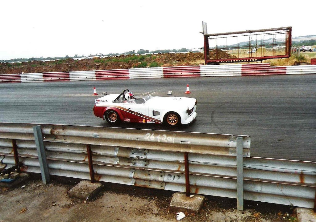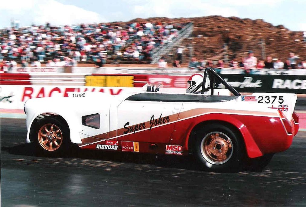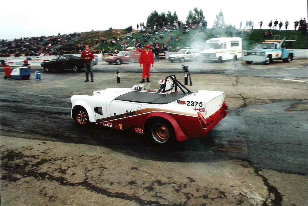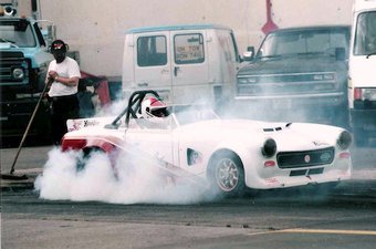I got to the point with the Berkeley where I’d gone way down on the engine size, still a BMC ‘A’ series engine but its only 850cc now with a tiny turbocharger, I’d adapted it to run 12’s to low 13’s to that specification but it never got there, the best we got out of it was a 13.9. One reason is the turbocharger takes time to speed up and it bogs on the line, gets to the 1/8th mile and it takes off. I thought I should get it back to somewhere where it should be once I picked back up on the Berkeley again, capacity wise. I’d done one or two modifications. I’d realized the one problem was not being able to get off the line. The slicks that were on there were not helping, they were just sticking. So, I put road going tyres on the back again and also added some Nitrous when you’d got full throttle. The Nitrous was fitted so that there was enough pressure in the inlet system which should have helped it off the line, then when it got to about 5 to 6 lbs pressure in the inlet system the Nitrous cut out and the turbocharger took over but I never got to try it. The theory is great but whether it would work in practice I’ll never know.