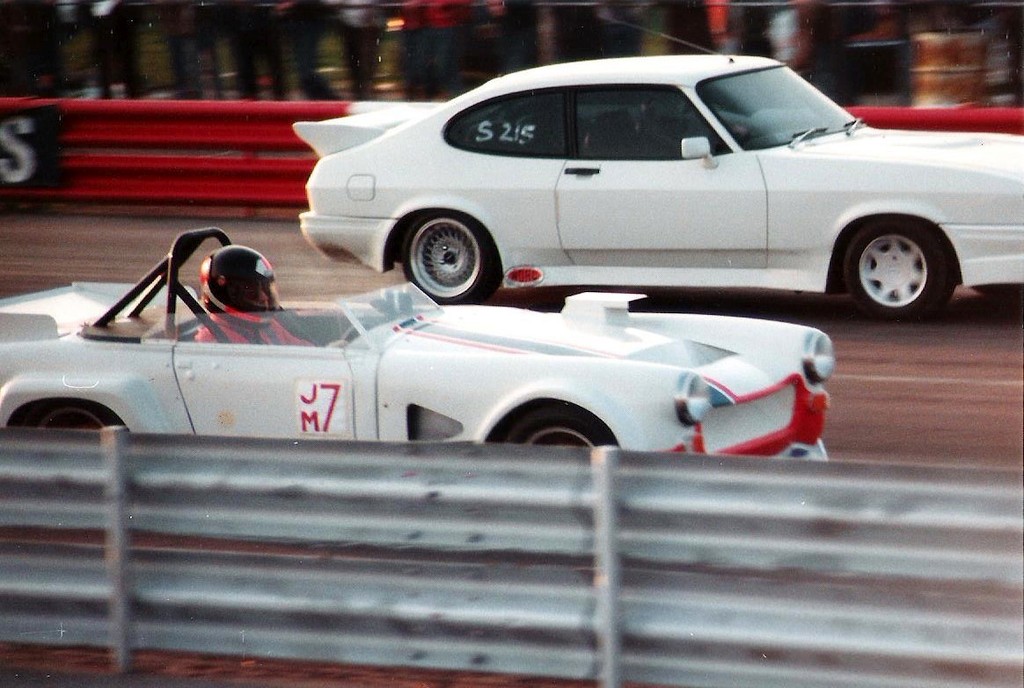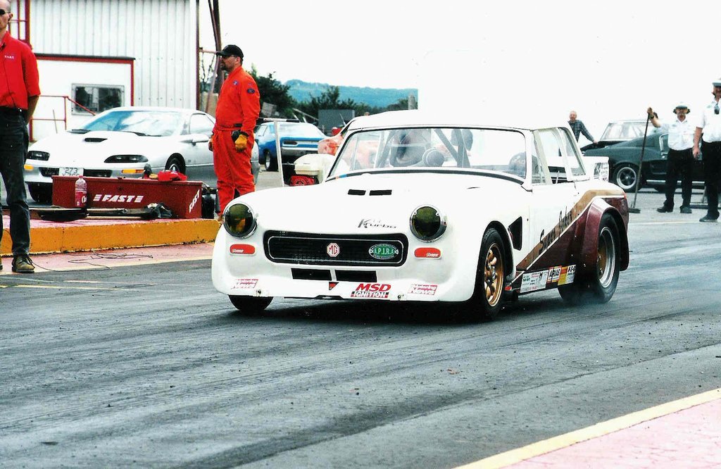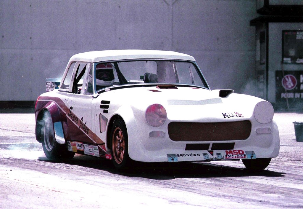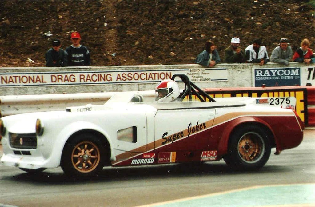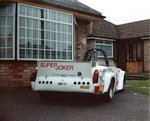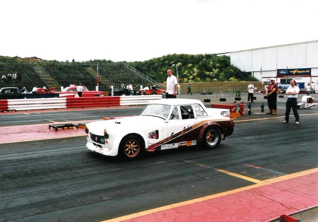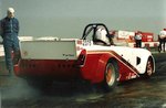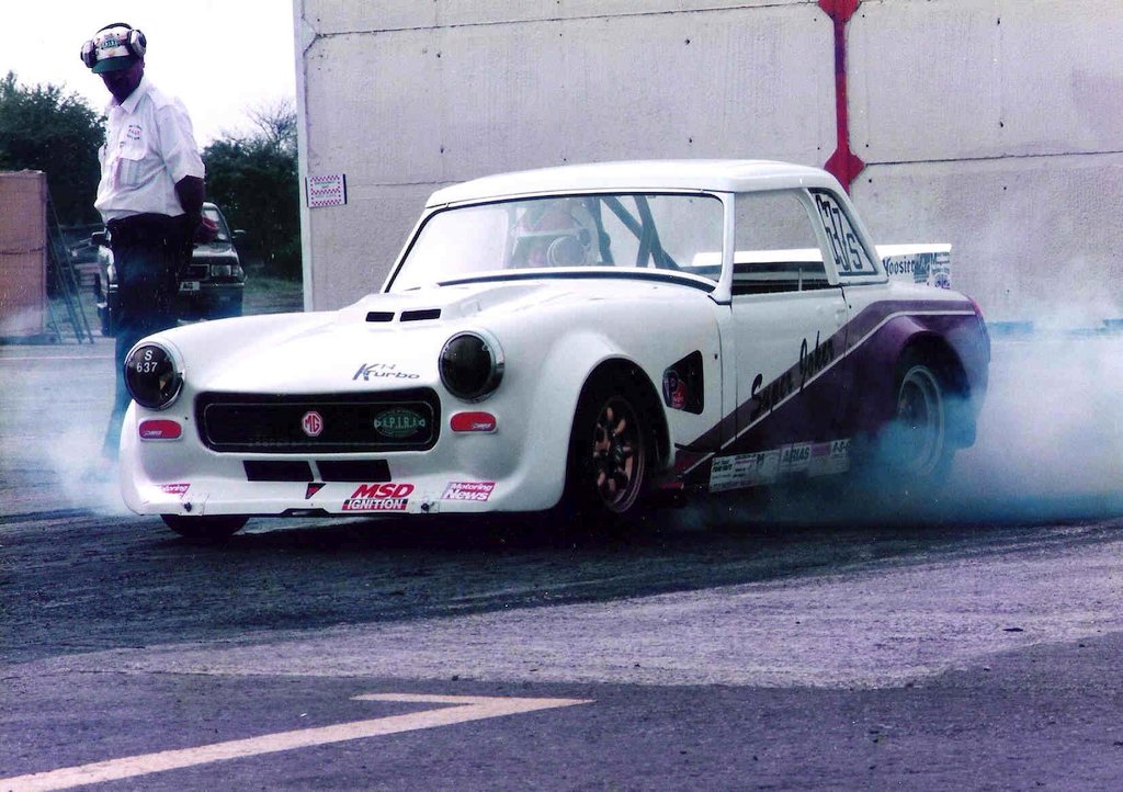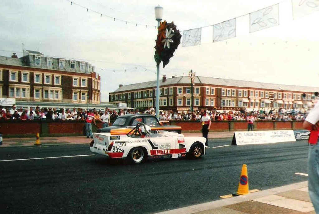 I got to the point with the Berkeley where I’d gone way down on the engine size, still a BMC ‘A’ series engine but its only 850cc now with a tiny turbocharger, I’d adapted it to run 12’s to low 13’s to that specification but it never got there, the best we got out of it was a 13.9. One reason is the turbocharger takes time to speed up and it bogs on the line, gets to the 1/8th mile and it takes off. I thought I should get it back to somewhere where it should be once I picked back up on the Berkeley again, capacity wise. I’d done one or two modifications. I’d realized the one problem was not being able to get off the line. The slicks that were on there were not helping, they were just sticking. So, I put road going tyres on the back again and also added some Nitrous when you’d got full throttle. The Nitrous was fitted so that there was enough pressure in the inlet system which should have helped it off the line, then when it got to about 5 to 6 lbs pressure in the inlet system the Nitrous cut out and the turbocharger took over but I never got to try it. The theory is great but whether it would work in practice I’ll never know.