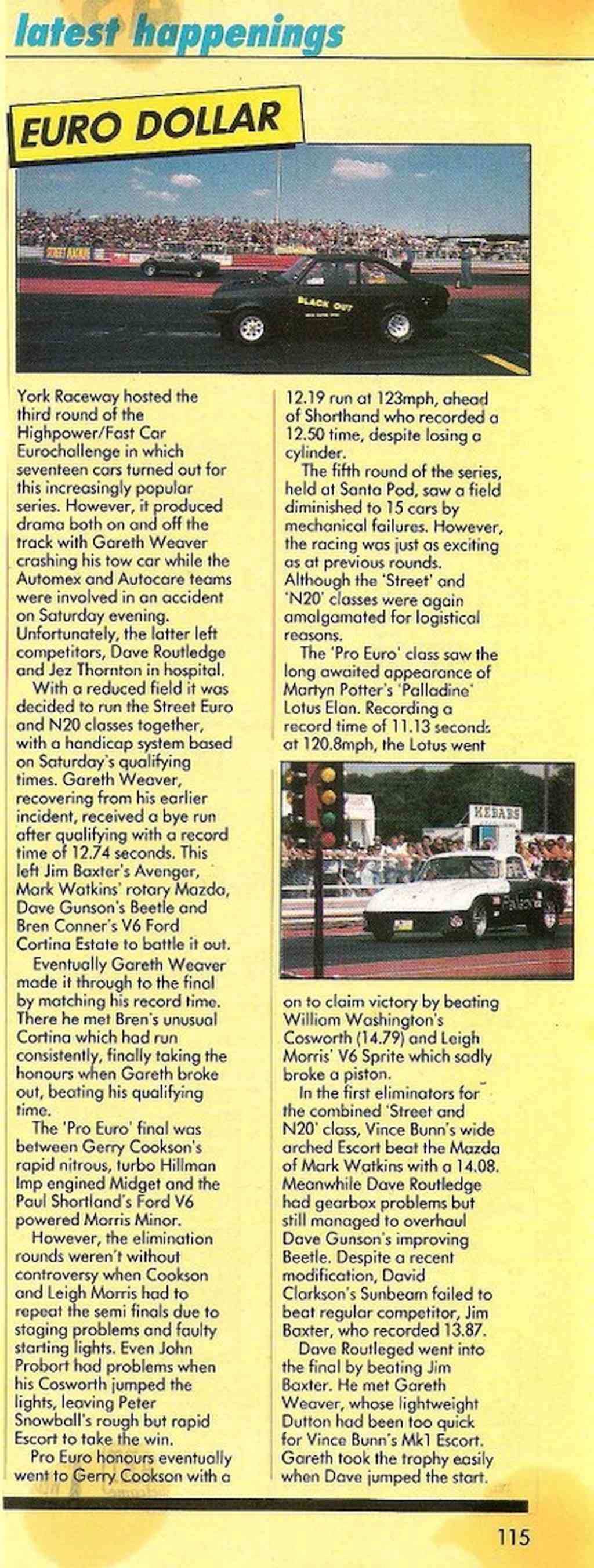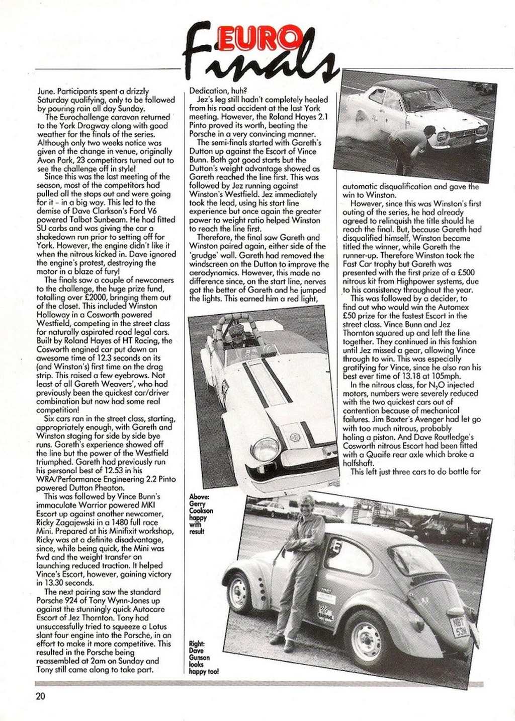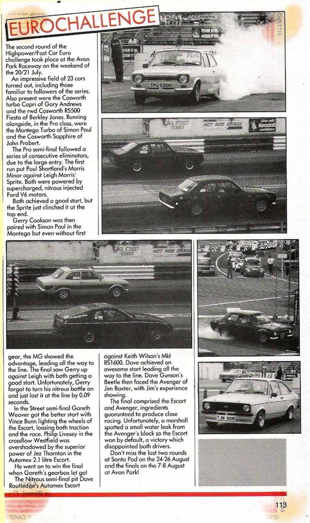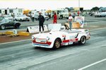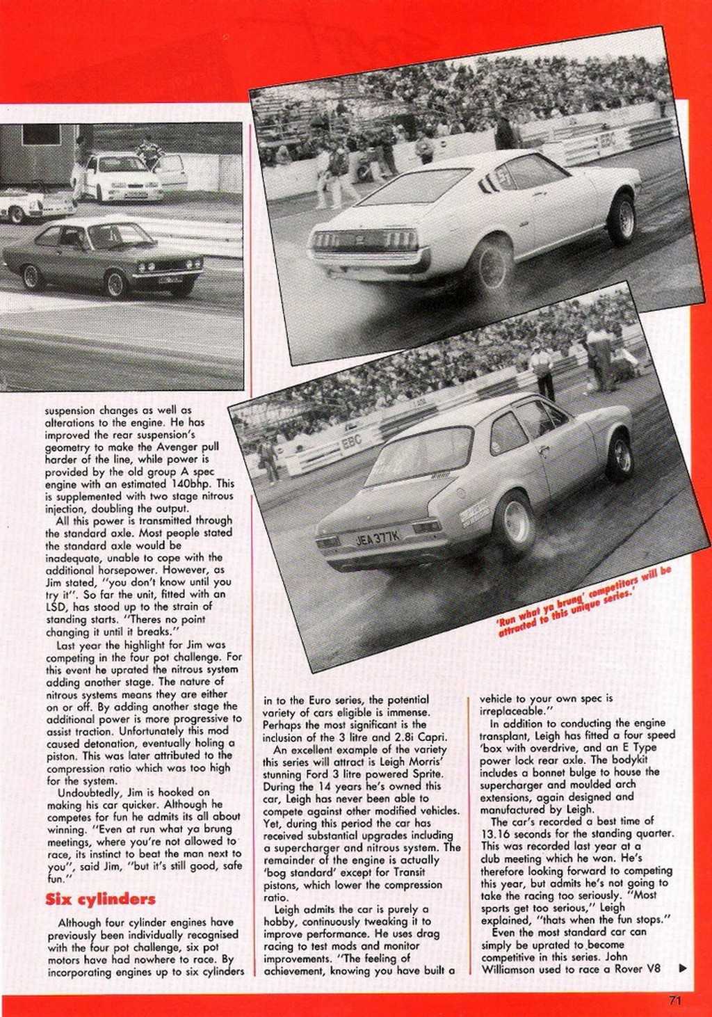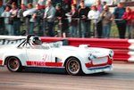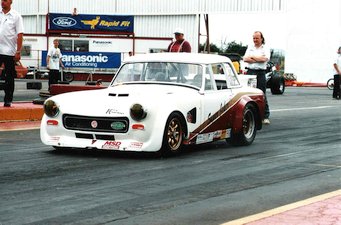 I got to the point with the Berkeley where I’d gone way down on the engine size, still a BMC ‘A’ series engine but its only 850cc now with a tiny turbocharger, I’d adapted it to run 12’s to low 13’s to that specification but it never got there, the best we got out of it was a 13.9. One reason is the turbocharger takes time to speed up and it bogs on the line, gets to the 1/8th mile and it takes off. I thought I should get it back to somewhere where it should be once I picked back up on the Berkeley again, capacity wise. I’d done one or two modifications. I’d realized the one problem was not being able to get off the line. The slicks that were on there were not helping, they were just sticking. So, I put road going tyres on the back again and also added some Nitrous when you’d got full throttle. The Nitrous was fitted so that there was enough pressure in the inlet system which should have helped it off the line, then when it got to about 5 to 6 lbs pressure in the inlet system the Nitrous cut out and the turbocharger took over but I never got to try it. The theory is great but whether it would work in practice I’ll never know.