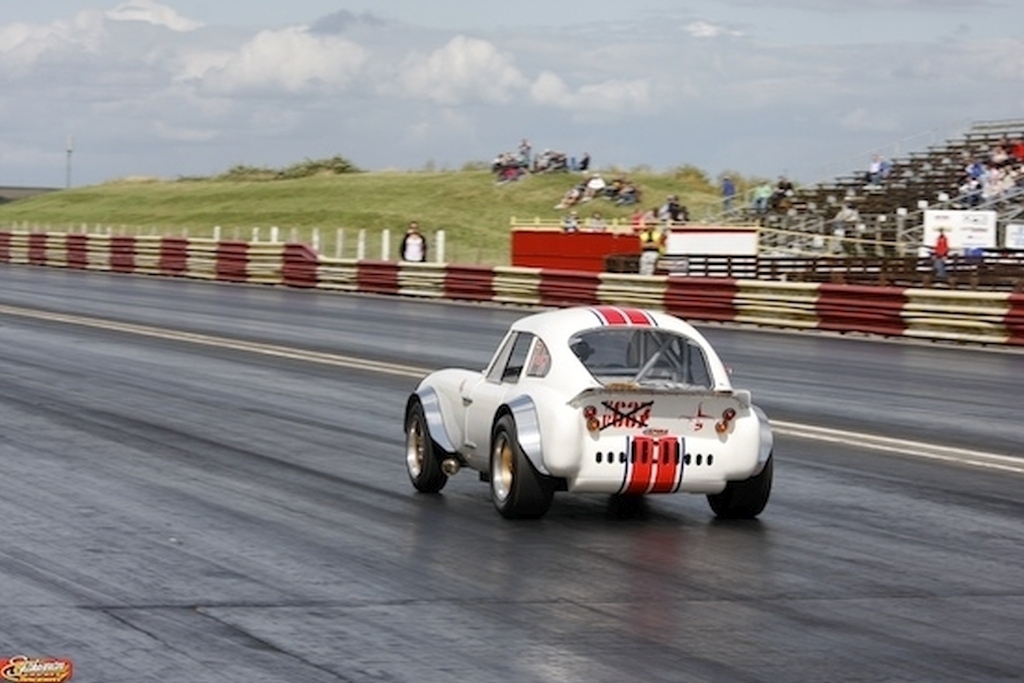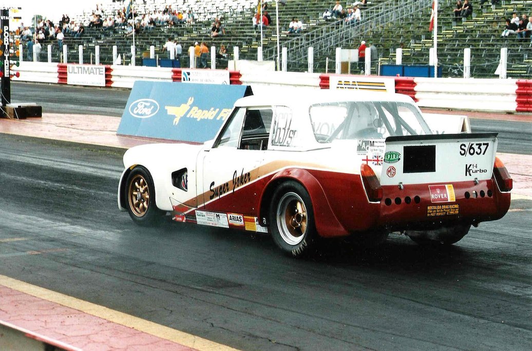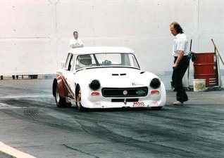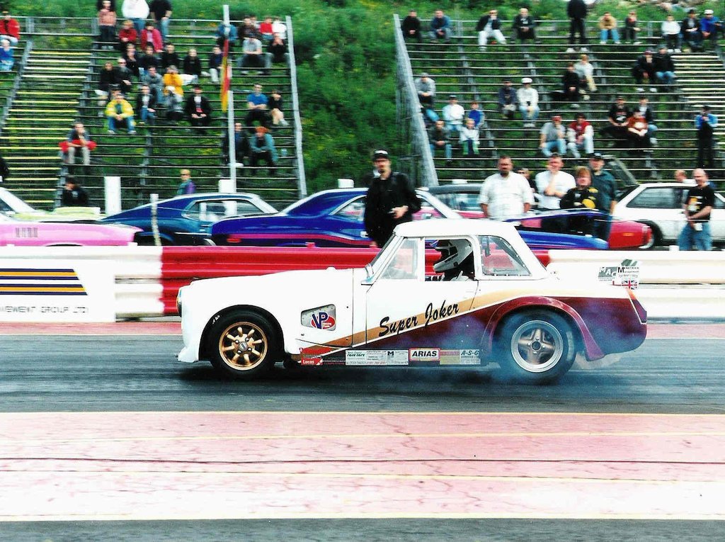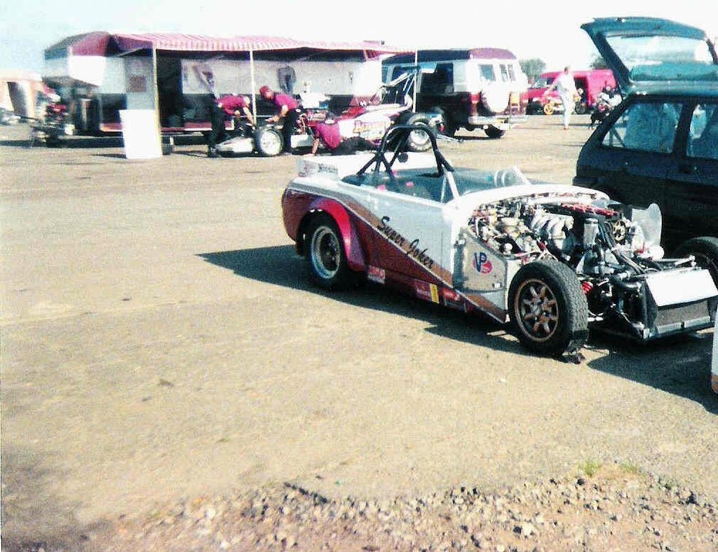 We ran the Midget from about 1989/90 to 1995. We took it to Blackpool and ran along the Golden Mile when York Raceway promoter Steve Murty ran a motorsports festival for a week. We could only do a burnout then had to brake as the police were there with a radar gun and said anyone going over 30mph would be fined. It was on the promenade and there were no barriers with the crowd lined up just to watch. Then I ran the Berkeley again till 2009/10. I had started to restore the Midget, starting with welding on the chassis, but at that point my eyes started to get macular degeneration so it now sits there in the back of the garage and still could be put back together. My wife had a serious fall while in hospital and since then I have had to care for her so that called a halt to my drag racing career.