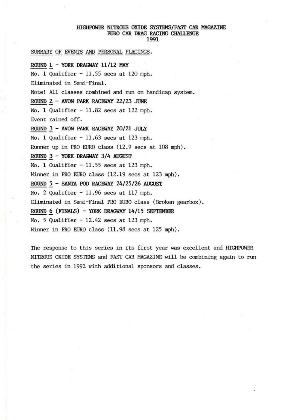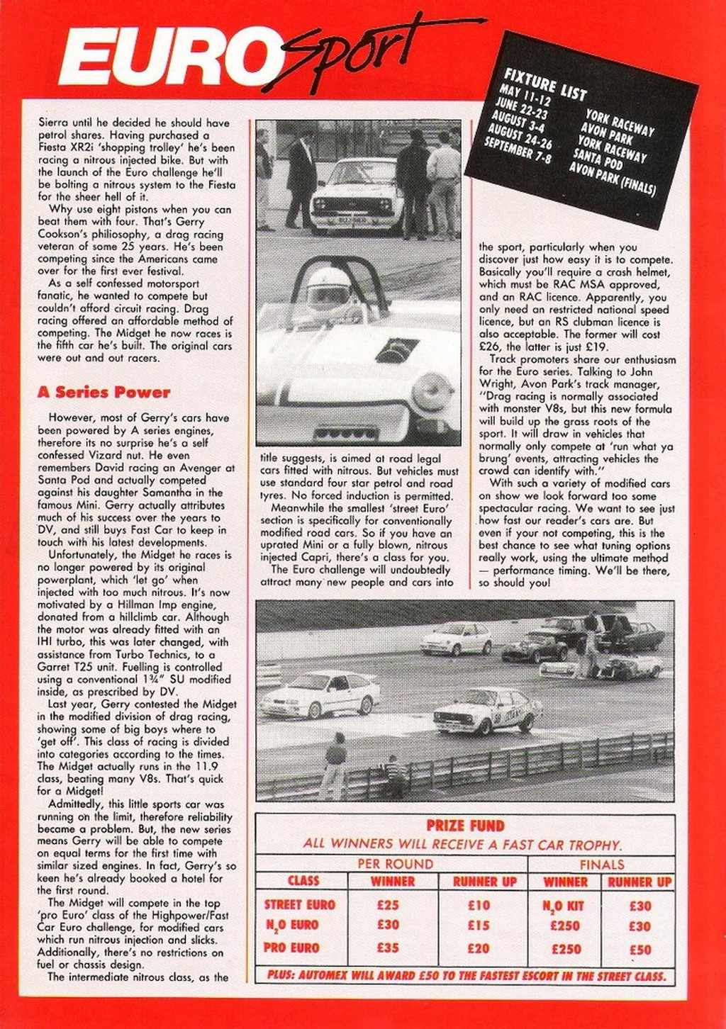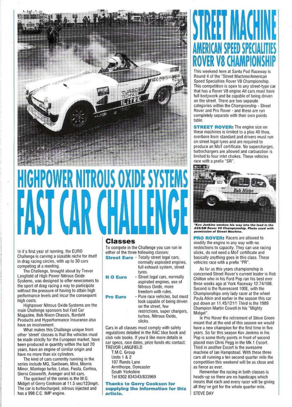 We ran the Midget from about 1989/90 to 1995. We took it to Blackpool and ran along the Golden Mile when York Raceway promoter Steve Murty ran a motorsports festival for a week. We could only do a burnout then had to brake as the police were there with a radar gun and said anyone going over 30mph would be fined. It was on the promenade and there were no barriers with the crowd lined up just to watch. Then I ran the Berkeley again till 2009/10. I had started to restore the Midget, starting with welding on the chassis, but at that point my eyes started to get macular degeneration so it now sits there in the back of the garage and still could be put back together. My wife had a serious fall while in hospital and since then I have had to care for her so that called a halt to my drag racing career.