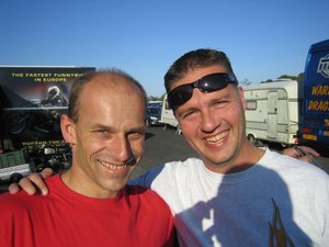 Larry McBride stopped me to chat about the US and UK racing scenes. It's always great to chat with Spiderman - he's the quickest guy in the world, but has no airs and graces at all. He is truly a legend in the sport, yet has is open and approachable. I've known him for a number of years now and it's always a pleasure to see him. I talked with Dave Conforti of Worldwide Bearings, the leading supplier of ceramic bearings for racers. I've been using Dave's bearings for a while and they really make a difference. Dave was really interested in the new bike we have underway and before I knew it he had given me a great deal for 2010. So you will see the new bike proudly carrying the Worldwide Bearings logo. Eric Hotchstetler (the owner of MTC, one of my main sponsors) and I spent a lot of time talking about the 2010 season. Eric is a great guy to have supporting my race programme, because MTC stuff is the best from my perspective and he and his team are always working to improve and develop their performance parts. So for next year I have pistons, blocks, clutch and a few other 'secret' parts from Eric to support our efforts. Eric shares a goal with me to run the first six-second Pro Stock run in Europe, so hopefully we will achieve this. I also met with Walter Sprout, the globe-trotting Super Street Bike racer and I spent a lot of time with Walter looking around his bike and picking his brains - UK racers will know that he is one of the world's fastest riders. With me doing more and more work on Super Street Bikes, you can bet that some of my customers will be stepping it up next season. Walking out of the exhibition I heard a loud shout of "Dave Beck!" from across the street and saw Scott Valetti, the owner of AMA Dragbike and a pretty good racer in his own right. Scott is one of those human dynamo guys, always buzzing with energy. We caught up with the news on both sides of the pond. I think Scott is doing a great job with AMA Dragbike and I wish him all the best for next year. Back at our villa, Don Plesser the owner of PR Factory Store and a longtime sponsor of mine dropped by for a visit. Don has backed me for a long time and I'm pleased and proud that he will be backing me again next season. With Don was Top Fuel Bike veteran Chris Hand. Those of you who know Chris will know that he is just one of the nicest guys in racing. I met him while racing Pro Mod in the US for a number of years, but it's been a while since I've seen him and this was a great surprise.