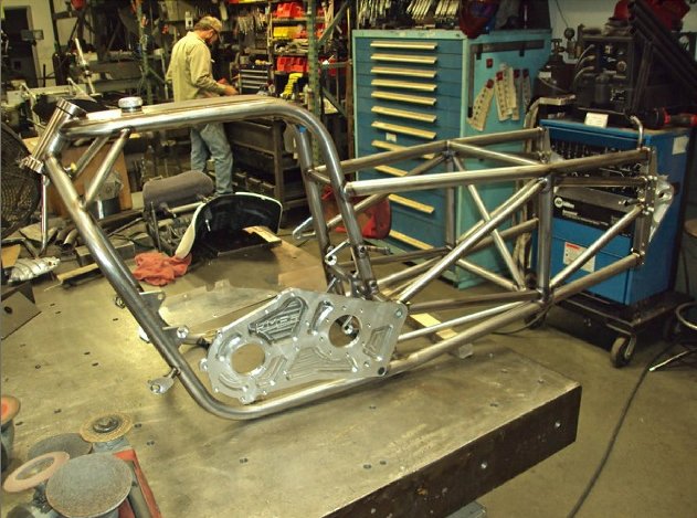 I tried to keep it as a non-racing break, but couldn't resist sneaking over to see Eric at MTC one day. He had some new stuff to show me and I also picked up a new block for the brand new motor we are putting together. While we were in the workshop, we heard that some European visitors had arrived in reception, so we popped out for a look and there were Roger and Karl Lyrén, plus four other members of the Veidec team. They were taking a look at the brand new MTC catalogue and I could see Roger was very impressed by the Pro Stock rider and bike on page two! Back over here, I was delighted that my Crew Chief Ric Naylor won the James Edgar Memorial Trophy, which is awarded for outstanding contributions by a Crew Chief, tuner or crew member. Ric has been my crew guy for a number of years now and makes big contributions to the TVR Power Pro Stock Bike team. On race day he helps with input to the clutch and ignition and helps me work with the tune up and any new ideas we have. He also finds time to campaign his bike in Super Gas Twin - I have no idea what it is, I do know it makes a lot of noise, is smoky and bits fall off it. He tells me it's a Yamaha, so I'll have to believe him. Thanks very much Ric - well-deserved award and you know we couldn't do it without you. Today my main sponsor Dom Trickett, owner of TVR Power, arrived to take a look at the new rolling chassis. We think the new PMFR frame will help us in our goal to run the first six in Europe. And it looks very slick with the all newly powder-coated frame and chassis parts. We just need to get the TVR Power paintwork applied and I think it will look like we mean business this year. Next weekend Ric and my other invaluable crew member Tom will be here again and we will wire the bike and maybe start to think about putting the motor in. Or maybe not on the motor - we have some work going on over at Ward Performance which is interesting and so it might be a last-minute motor installation before the Easter meeting.