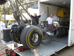 I would like to thank Larry Miersch, his Crew Chief Jim Rizzoli and Miersch senior for all the hard work they put in to ensure the car and spares are virtually race ready, after rebuilding the engine, heads etc. Larry even sent the mags, Racepak computer and crank away to be tested before rebuilding it. They fired it up to make sure everything was all OK and as you can see in the picture Jim looks pretty pleased with the fire-up. They loaded the car and parts in his trailer and delivered it and unloaded it all at Montana Exports, who have arranged all the packing and shipping for us.