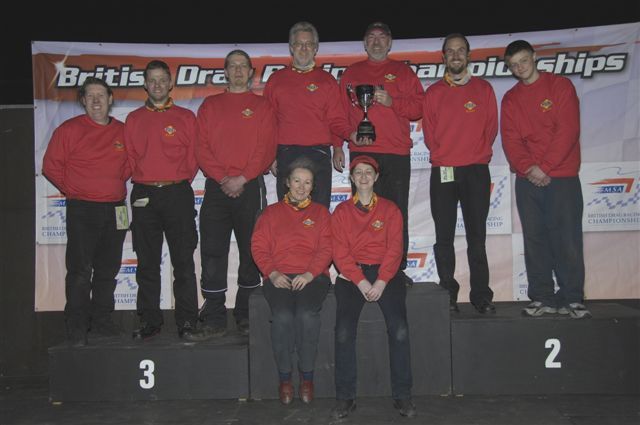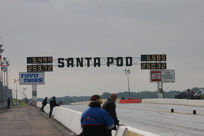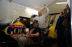 Larry Miersch of Miersch Racing wasted no time in replacing the car he sold to us. Originally Larry was going to go Top Fuel, but after talking things over with his team and Mike Spitzer of Spitzer Race Cars, he has decided to stay with A Fuel and is now the proud owner of a 2009 Spitzer, 300 inch wheelbase chassis, and we have been invited to the Christening at Vegas. Gold RV Racing Team members, John and Sarah Foster and myself, are off to Vegas and then Pomona to watch and learn some more about running and tuning an A Fueller. Larry's setup will be very similar to ours, and we are really looking forward to meeting up with Larry and Jim again. Larry and his team are up against it a bit, having only just got the chassis and will have had only a couple of weeks to totally build the car up from a bare chassis and body. Knowing Larry as I do, I am sure he and his team will be doing everything possible to make sure it happens, as they did for us. So this Thursday, we are off to Vegas to watch the AC Delco Las Vegas NHRA Nationals at the weekend and then on Monday hopefully, or on Wednesday if things don't quite go to plan, watch Larry test Big Brother. The following weekend it is the Vegas Divisionals, where he will christen his new ride in a competitive event, but with twenty plus TMDs going for an eight car field it is going to be very tough. Then it is straight off to the season's finale at Pomona (Larry's home track) where there are nearly thirty cars going for a sixteen car field. So if you are going to Vegas or Pomona, as I know a few of you are, please come to say hi and join us in wishing Larry and his team all the best. Despite our weather, Larry & Lauren and Jim & Kay had a great time in England and made quite a few friends, and I know they would appreciate you coming to say hi. Oh, how I wish we could race in the US!, three events in seventeen days with some testing in between and the weather promises to be 20 – 30 degrees C., and hopefully not a drop off the wet stuff in sight, oh I hope I haven't just jinxed it; I went to the desert race in Phoenix last year and the first day was rained out! We hope Larry's debut with Big Brother is as successful as ours has been; thanks to his and Jim's efforts, and when I come back I look forward to telling you all about it. Sunday 5th October 2008: The National Finals: On our own and without our crew chief!