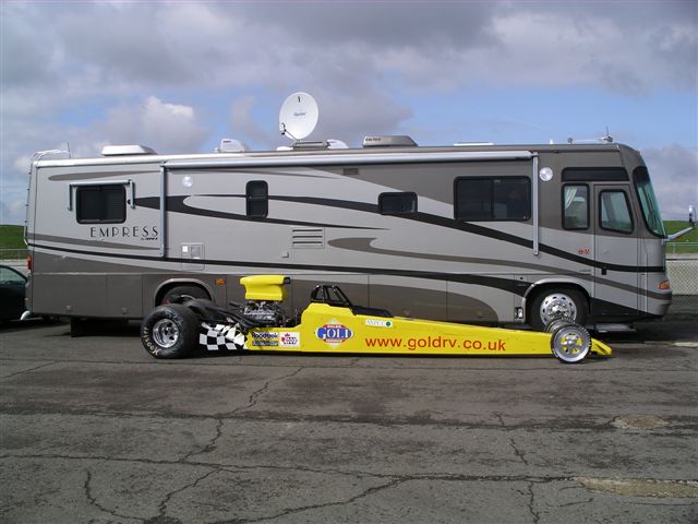 Here at Gold RV Sales & Service Ltd. we are also celebrating another anniversary, thirty years ago Gary started Gold Motor Service Company and specialized in USA RVs, later we merged Gold Motor Sales into the one company Gold RV some 11 years ago now. I was a customer of Gary's 17 years ago and after selling up our house in 1999 Fiona & I drove off in our RV for an adventure in Europe and Turkey to see in the new millennium after all doom mongers were telling us the world was going to end after the millennium bug bit. I must say if the world was going to end then we would have been quite happy, we had parked our RV at a campsite on the edge of a lagoon, with a beach to ourselves bathed in lovely sunshine in the middle of winter, so obviously we did not rush back and when we did eventually return to the UK we parked up at Gold and it still feels like we are living our RV'ing adventure now and the rest as they say is history, we all really love RV’ing and get away as much as we can. Drag racing has also been a huge part of our way of life over the last 10 years and we have been RV’ing all over the world, racing or catching up with our many drag race friends. After a few annoying health issues over the last couple of years, I should be fighting fit soon, and I cannot wait to blow out a few cobwebs and exercise my right foot a little. I would also just like to say a huge thanks for all the get well messages etc. It was overwhelming the support I received from all my drag racing friends and family.