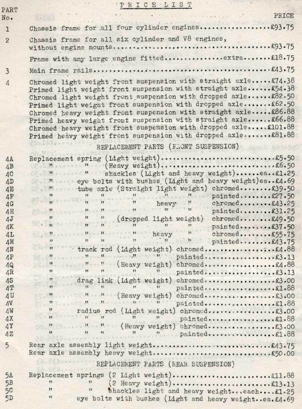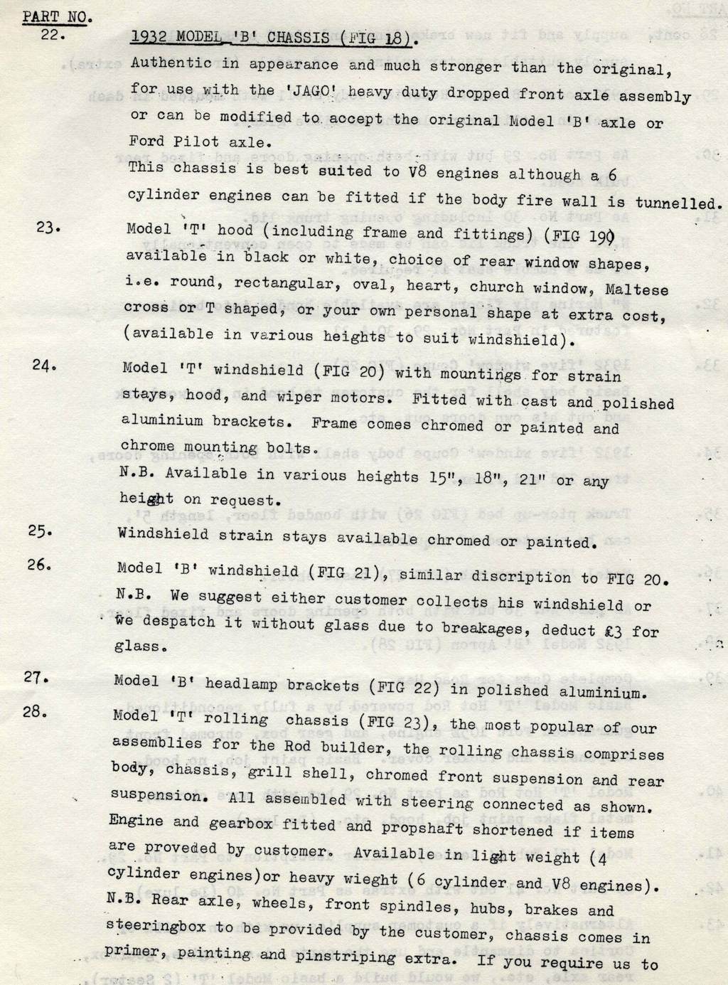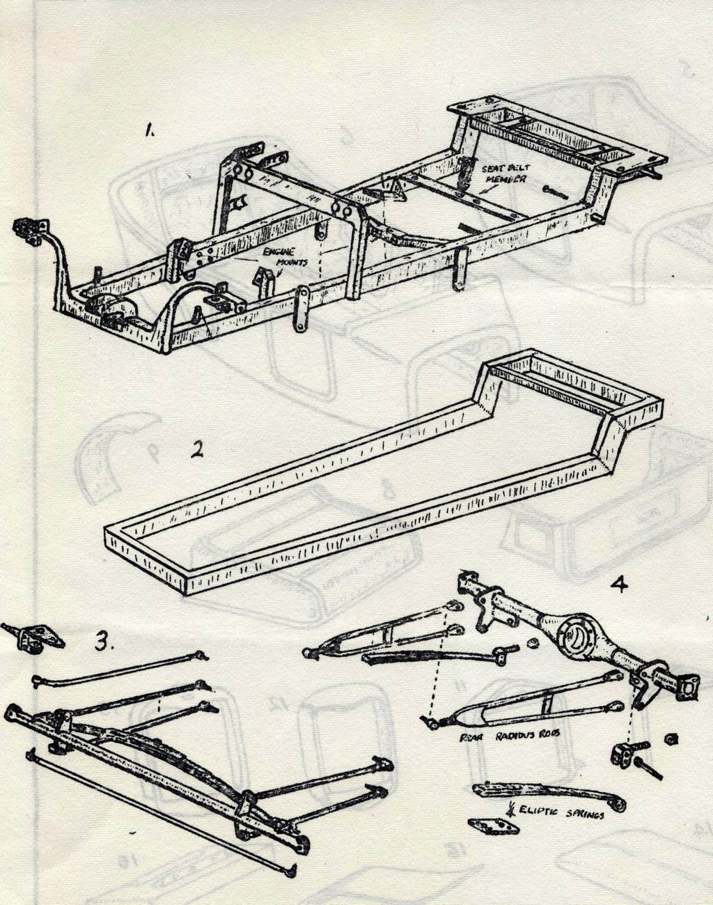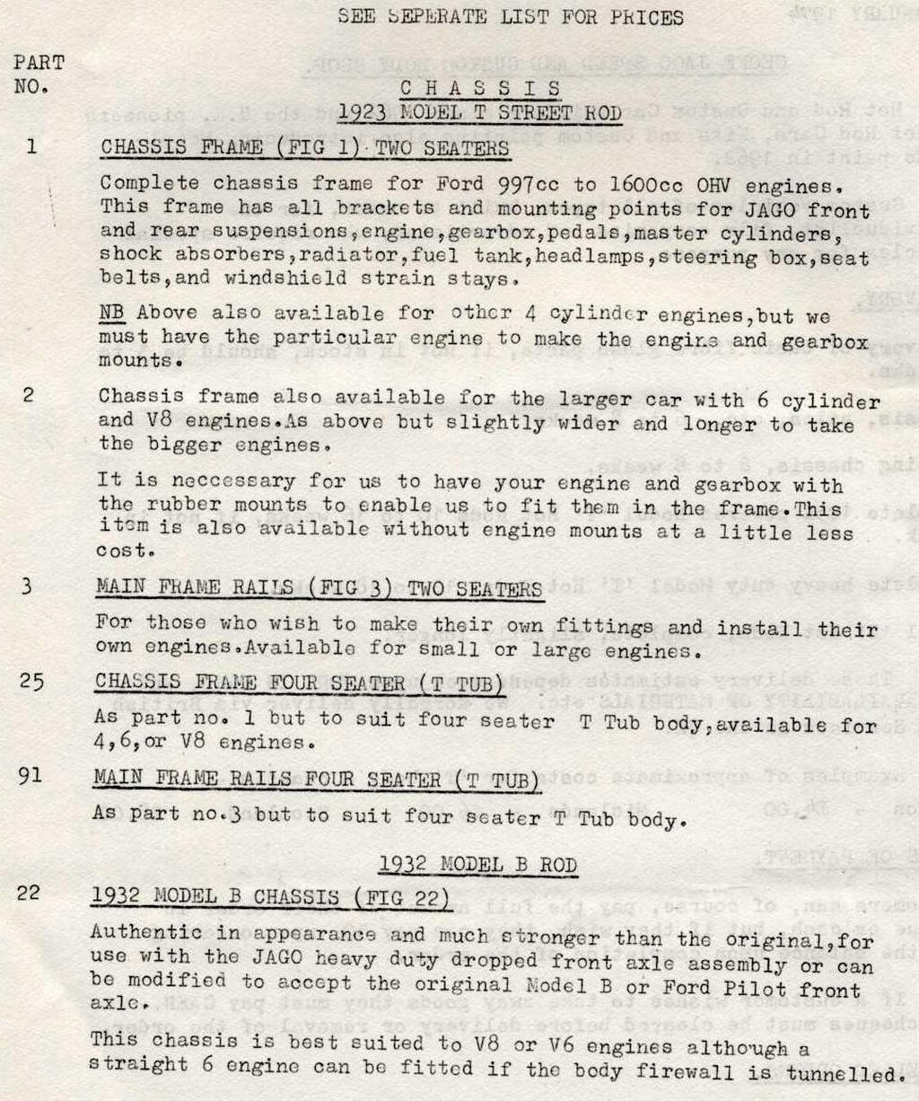 I made the chassis for them and used the same dropped axles with Transit spindles and springs as we did for the Ts, it was all standard for the Bs and the Ts. We built a few complete cars but mostly they were sold as bodies and chassis, axles and odds and sods for people to make up themselves. Later we built chassis for Ford Pops. These were much stronger than the original chassis and came with brackets for the front and rear suspension.
