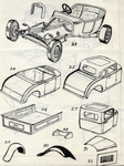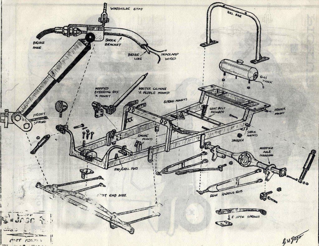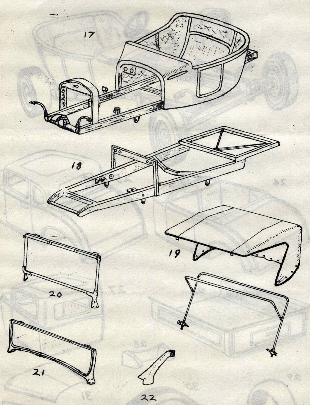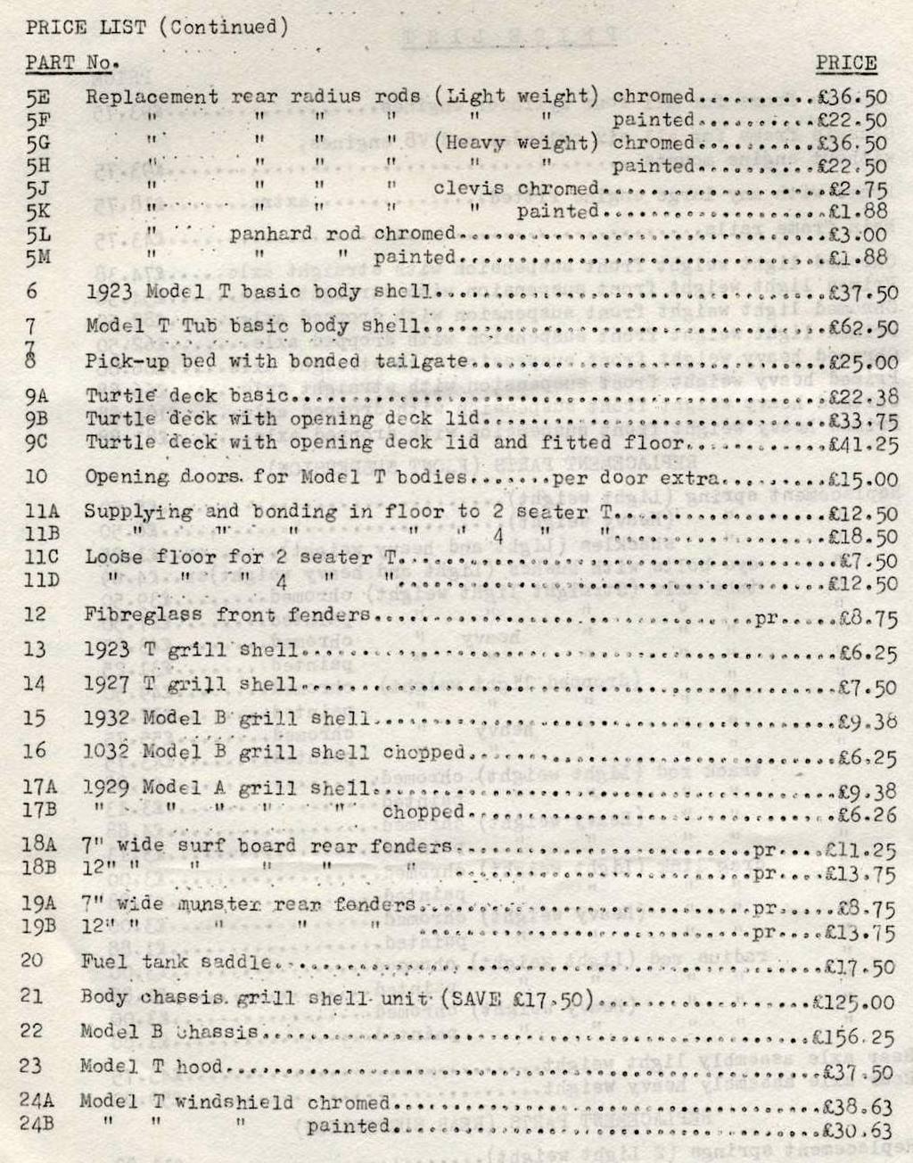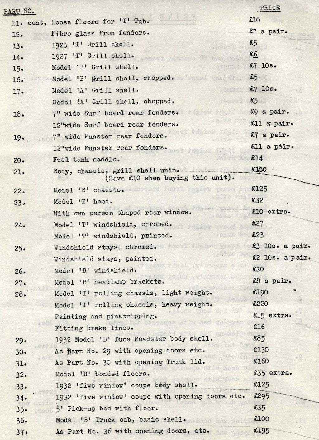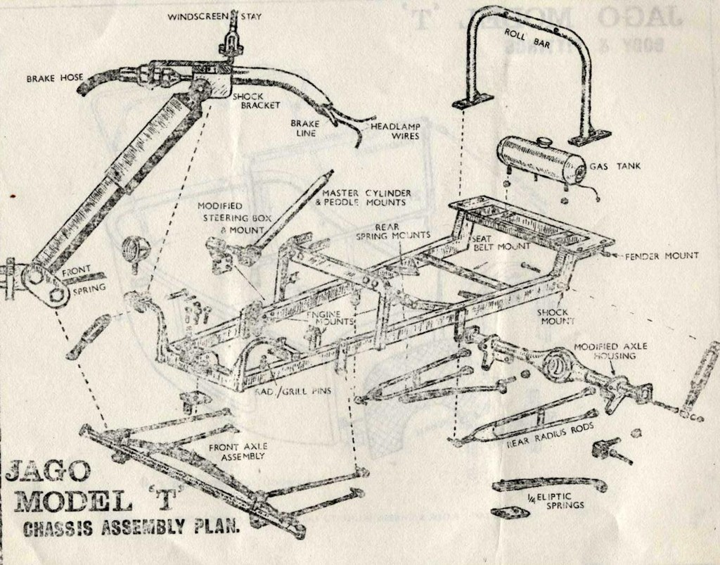 I made the chassis for them and used the same dropped axles with Transit spindles and springs as we did for the Ts, it was all standard for the Bs and the Ts. We built a few complete cars but mostly they were sold as bodies and chassis, axles and odds and sods for people to make up themselves. Later we built chassis for Ford Pops. These were much stronger than the original chassis and came with brackets for the front and rear suspension.