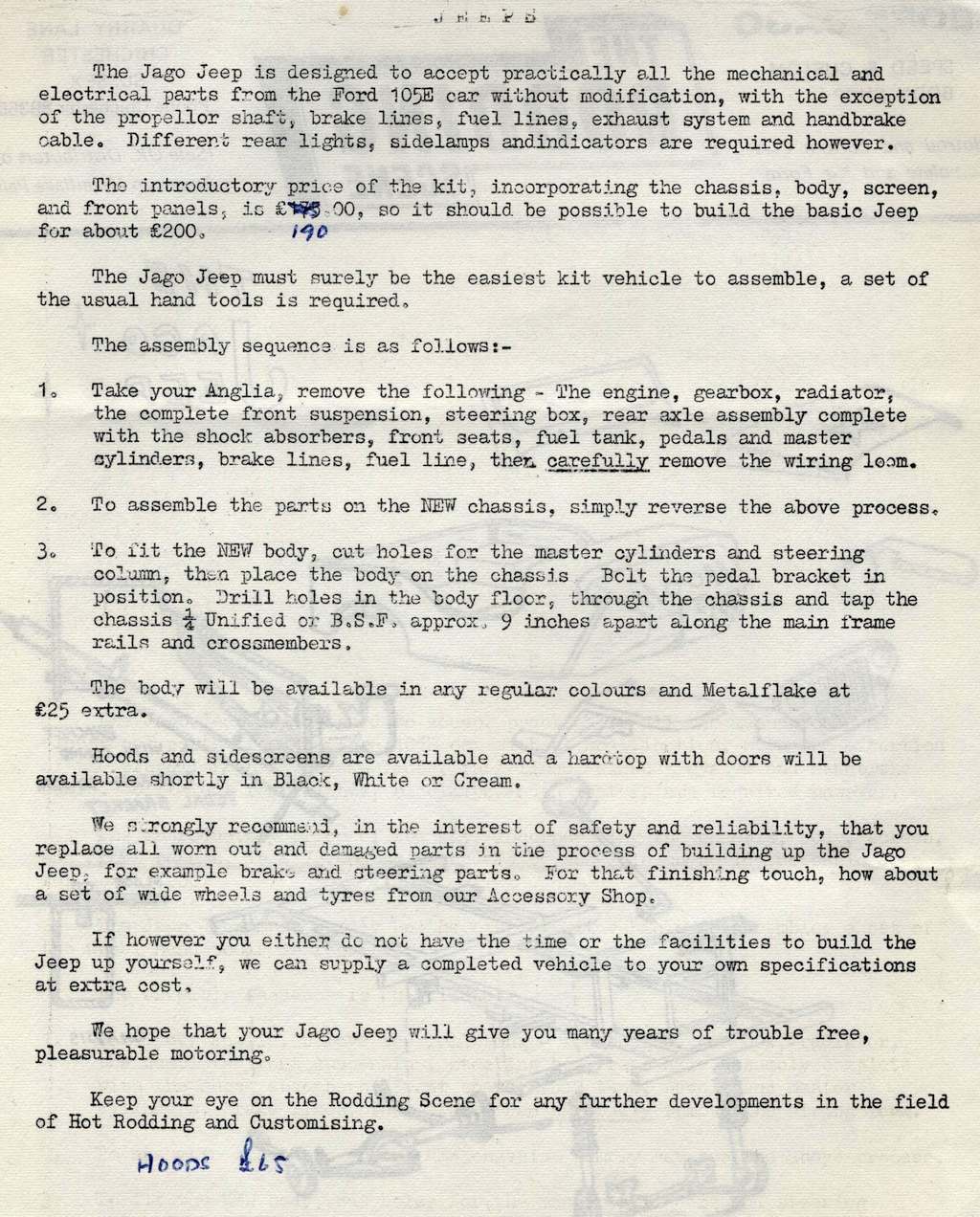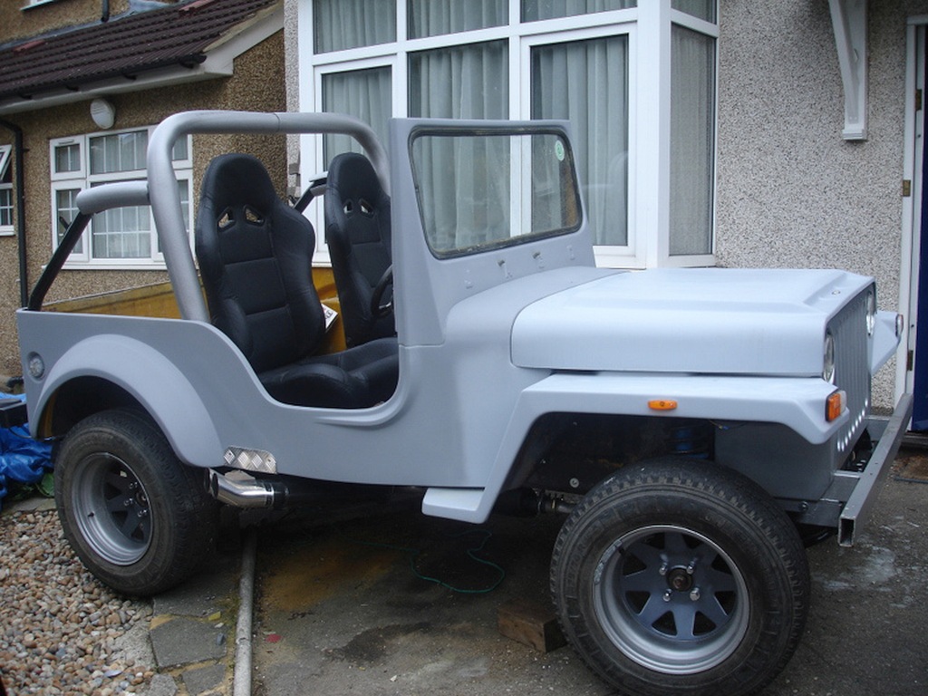So, I carried on with things and at that time Jeeps were the big thing. A lot of people were saying, well we like Hot Rods but a lot of them didn’t have the capability to build and finish one off. They wanted a DIY kit of some sort, something American looking that you could just bolt together and that’s when I thought of the Jeeps. I was very lucky to be able to find a Jeep body, someone I knew had one and basically gave it to me. It was in a blackberry bush in a bad state, he said if you can get it out you can have it. It was all beat up. I had to reskin the sides, getting rid of all the rivets and dents so I could make a fiberglass shell. The first shell wasn’t very good so I improved it making another one to take some decent moulds off. I had to make the fenders but I did have a grill. I wanted to make it more practical to be used every day as a run-around, this was in 1972. I built nearly 2000 of them, 1800 where kits and some were completely built. The body and chassis kit only needed bolting together, no welding required. The donor car was a Ford Anglia 105E for the first few then it was the Ford Escort. All the parts were just bolted onto the corresponding places on our chassis which came with instructions. Then it was a case of just bolting the body on the chassis.