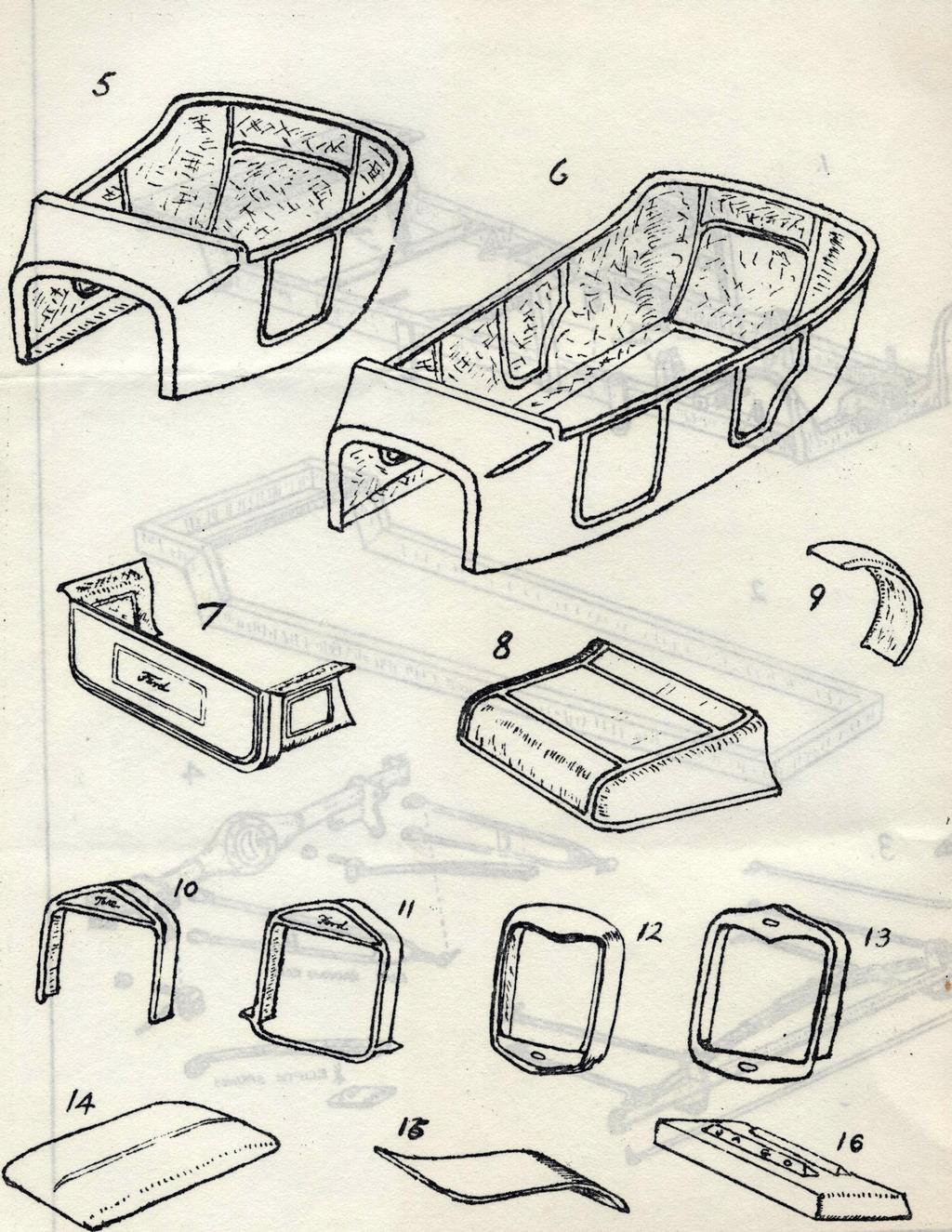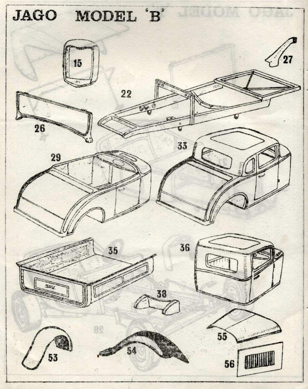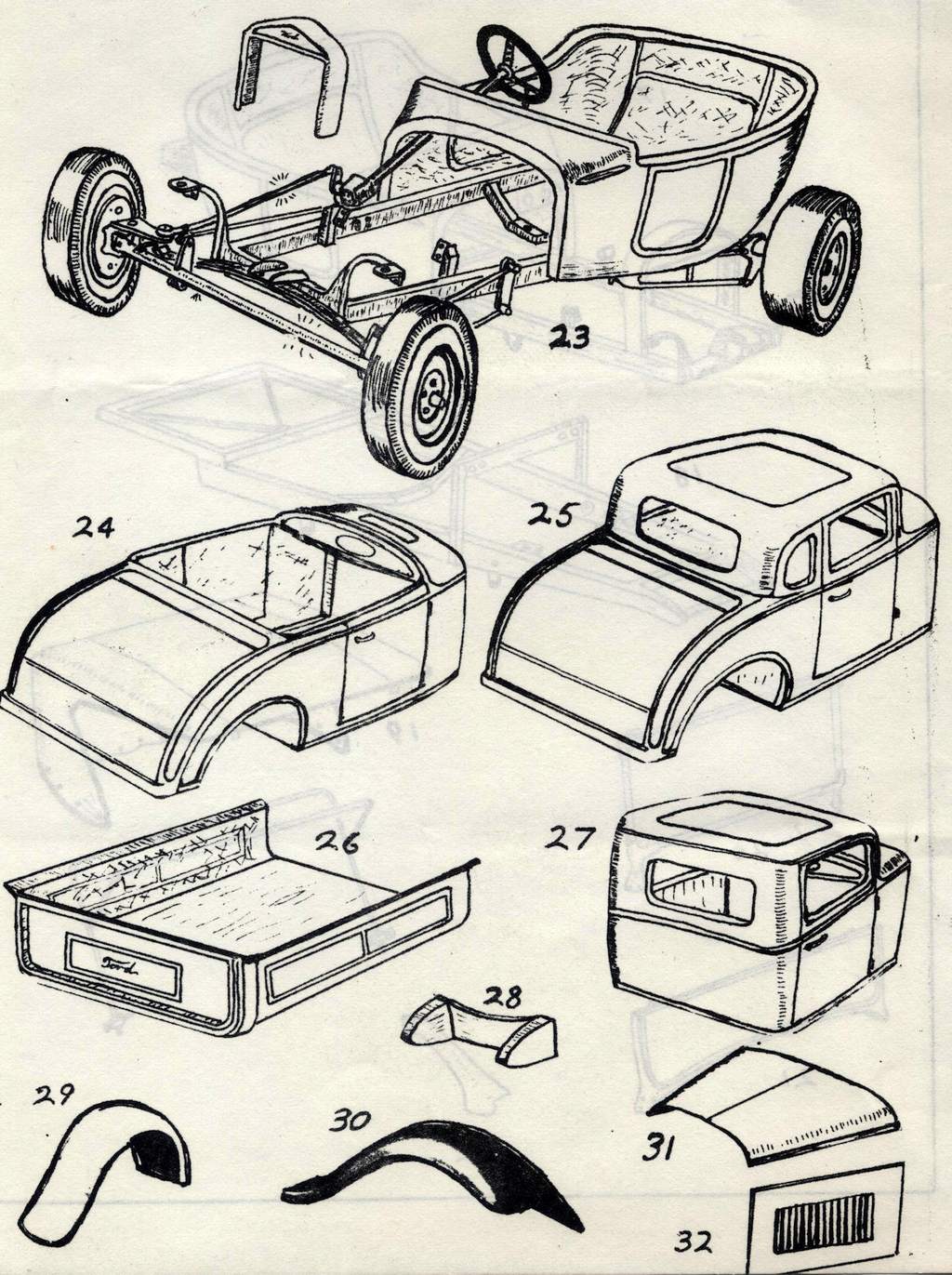Later we did the 5-window Coupe, Sedan and a Panel Van similar to the Sedan but with the rear side windows filled in and an opening door at the back and we also did a Truck Cab. Somehow and I don’t recall how we managed to get hold of the top off a 5-window Coupe, just the roof part. We already had the Roadster so we put the top on that and took a mould off it making a Coupe.